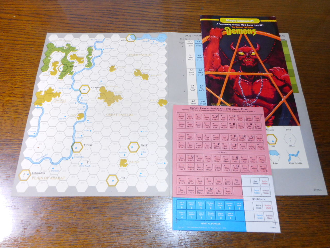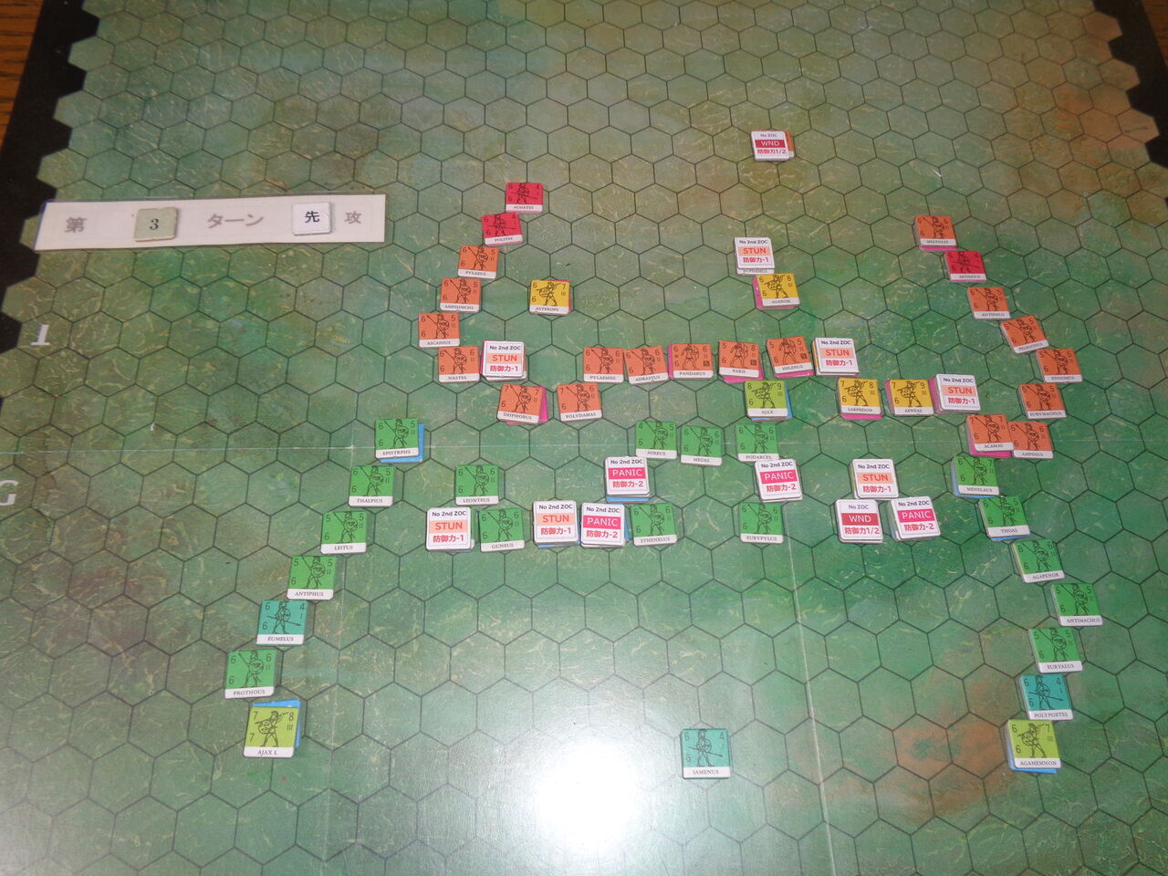 中世アルメニアを舞台に、召喚した魔神を使いながら、宝物を捜索するファンタジー・マルチです。マップはわずかハガキ3枚程度の大きさで、ユニットは100個程度。それでもルールは10ページ近くあり、果たして読み込む価値があるのか?!でも、ソロプレイ(!)もできるそうで、ちはら会得意のソロ演習でクリアだぁー!(笑い)