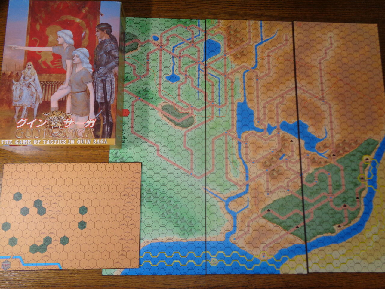 故栗本氏の未完の超大作「グイン・サーガ」のノスフェラス編をゲーム化したアイテム。モンゴール軍が逃走したレムスとリンダを追いかける設定です。クォーターマップですが、イドの谷やラゴン、ノスフェラスの瘴気など、それらしいルールが満載。グインが突風に飛ばされると、マップ中央の10cmの高さからグイン・ユニットを実際に指で弾き(!)、そこに着地するというお遊びルールも。