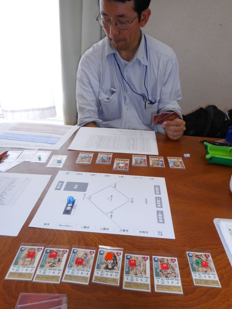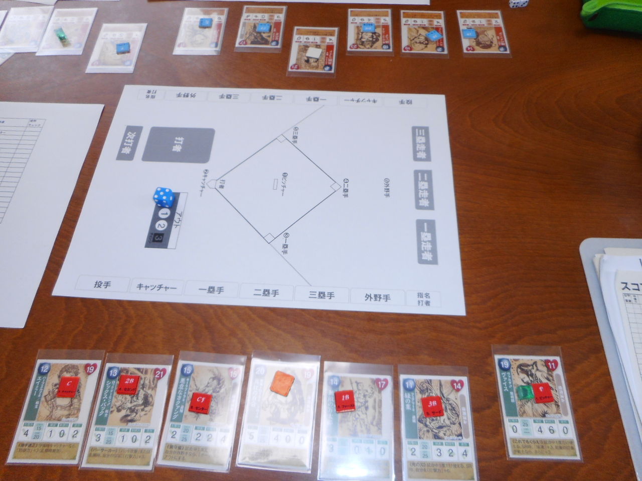 で、さっそく、プレイボール。序盤はそこそこ、平和なプレイが続きますが、時折、デッドボールや回転バットが炸裂し、負傷チェックに。mitsu率いるトロールTigersは、最も弱い盗賊がビンボールで死にかけますが、魔術師のヒーリングでなんとか生き残ります。中には狙ってきたビンボールを、男岩城顔負けの悪球打ちでヒットするプレイヤーも(笑い)。