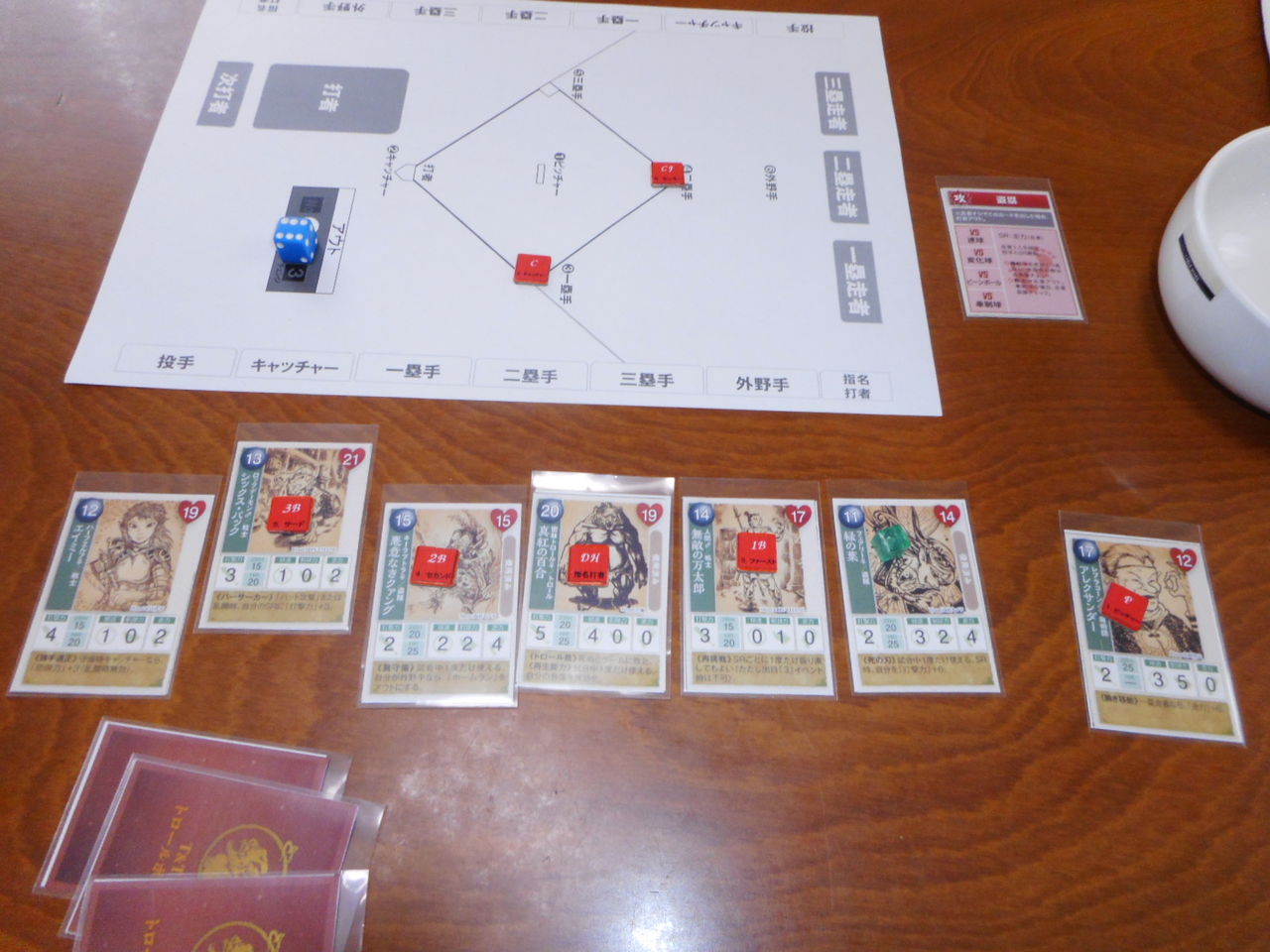 最近、スポーツジャンルを立ち上げた話題から、「では、これを」とBIBIさんが取り出したのが・・・「T&Tトロールボール」(ウォーロック)です。確かにスポーツは、スポーツですが。 その名の通り、トロールを主将にした6人制(ショートを除く内野手と外野手が1名!)の野球ゲームです。基本は、ピッチャーがストレートか、変化球かを選び、打者がそれを読んで打撃をします。ともに26dして、投球と打撃の修整値を加え、大きい側が成功します(投手ならアウトに、打者ならヒットに)。T&T らしく、ゾロ目が出ると、再drして加わるので、弱小打者でもエースからヒットを打てる可能性があります。が、そこは血なまぐさいFantasy級でして・・・両軍とも、ふつーの試合だけでなく、相手の選手を5人以上倒せば、勝利になります。よって、ピッチャーにはビンボールが、バッターにはバット攻撃(!バットをぶん投げる)があり、通常のプレイのフリをして、敵選手への攻撃の機会を狙います。