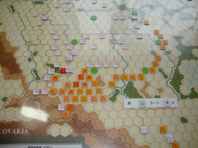 第3ターンから第4ターンは、Krakow東方地域でソ連軍とポーランド軍が戦闘になります。ソ連軍は大兵力にものを言わせ、毎ターン、2-3ユニットずつを撃破するものの、巧みな遅滞戦術により、前進速度は鈍ります。