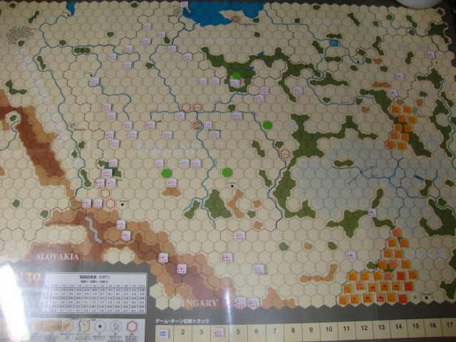 それでも、巧みな部隊運用で正面へクスを限定し、第16ターンまで、遅滞戦術を繰り広げます。
