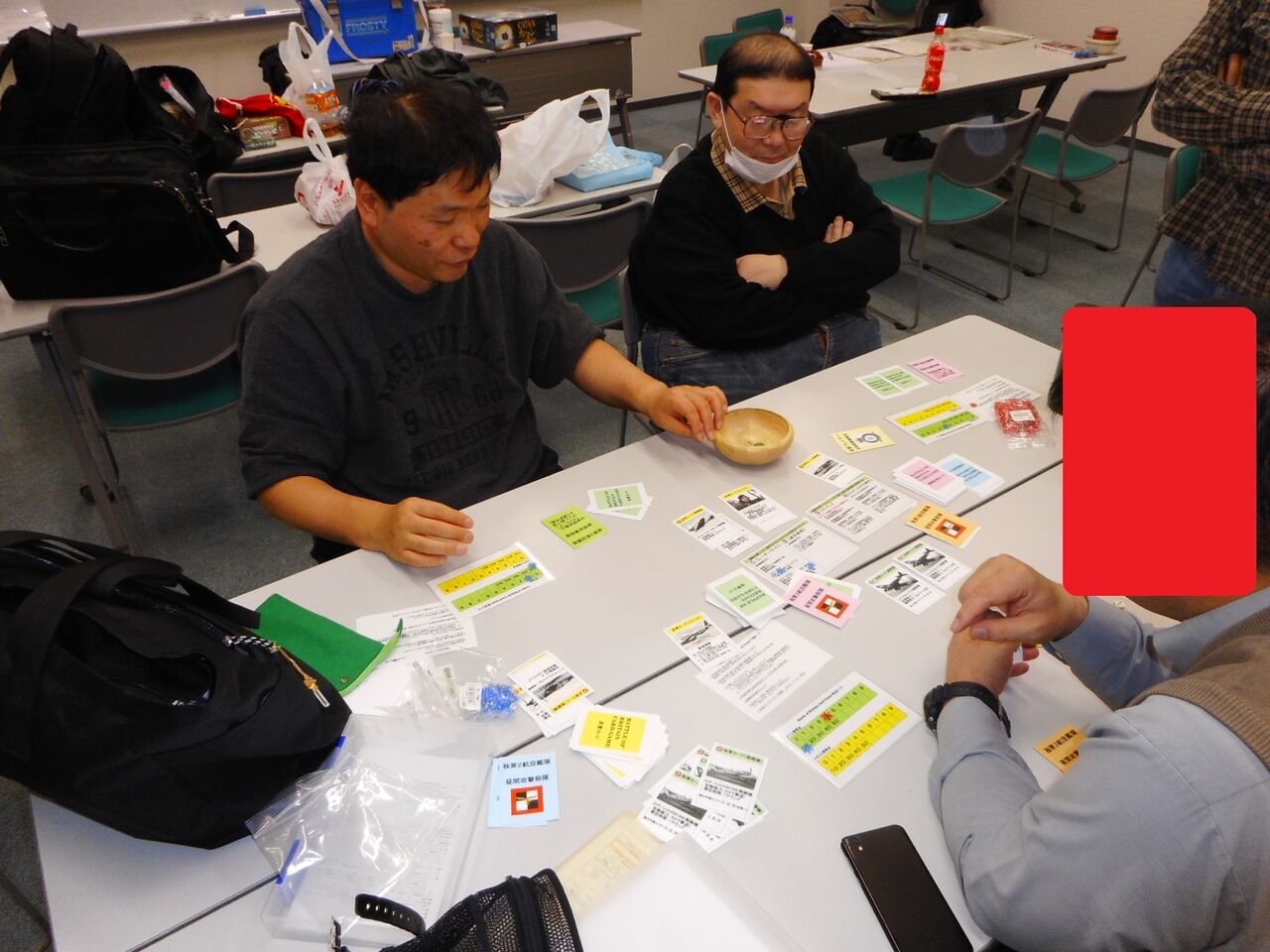 「バトル・オブ・ブリテン」(グループ乾坤一擲)は、平さん持ち込みのオリジナルカードゲームで、前回に続き、2回目となります。競争原理をうまく使った変則3人マルチといえましょうか(詳細は、前回記事を参照)。平さん・Tommyさん、エンジョウさんの対戦でしたが、勝敗の記録がなかったので、ご存じの方はコメントください。