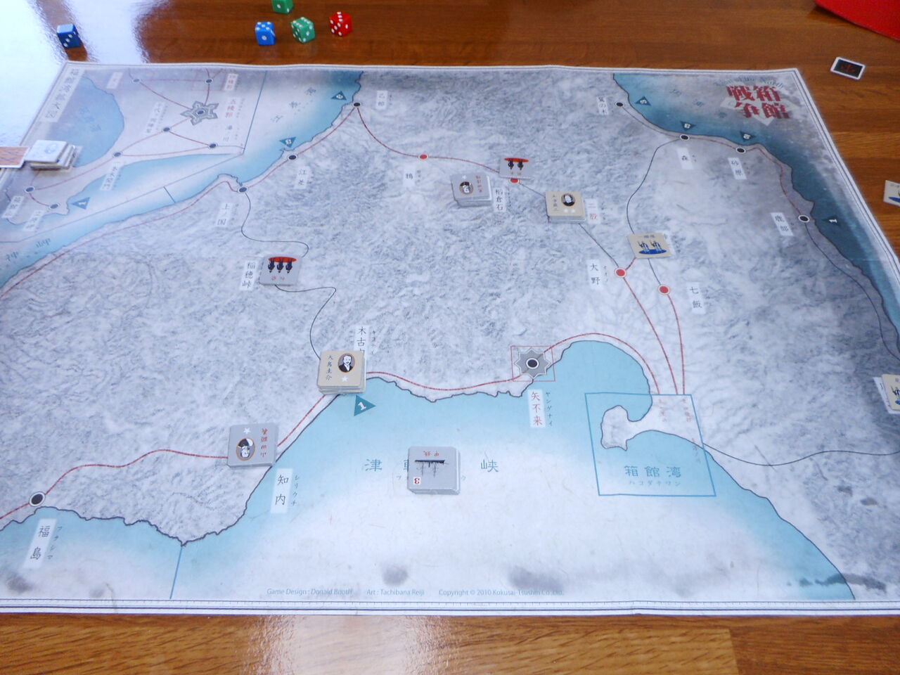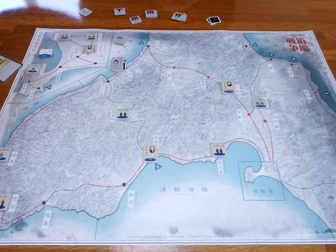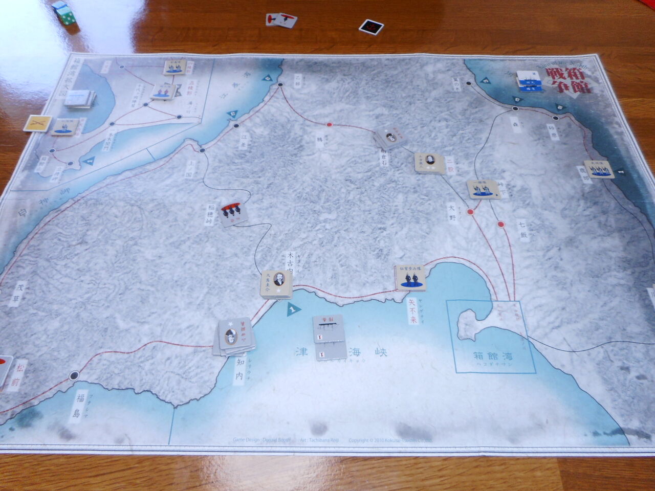 ああ、新型コロナウィルスのため、断腸の思いで、ちはら会例会を中止にせざるを得ず・・・せめて少人数のオフ会をと、Tommyさんと対戦をすることにしました。選んだゲームは、幕末維新アイテムから「箱館戦争」(WGJ)です。陣営は、Tommyさんが共和国軍で、mitsuが新政府軍です。