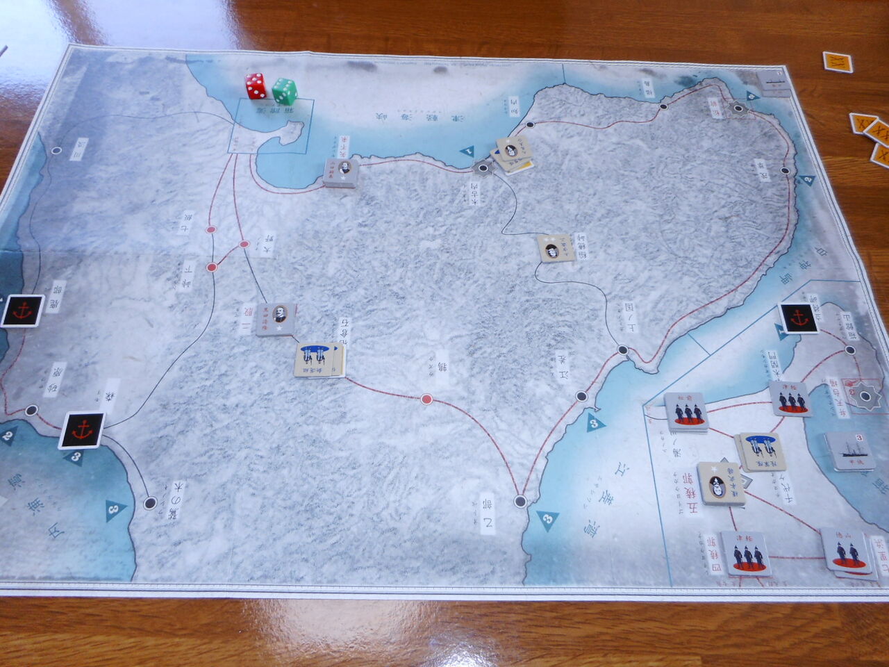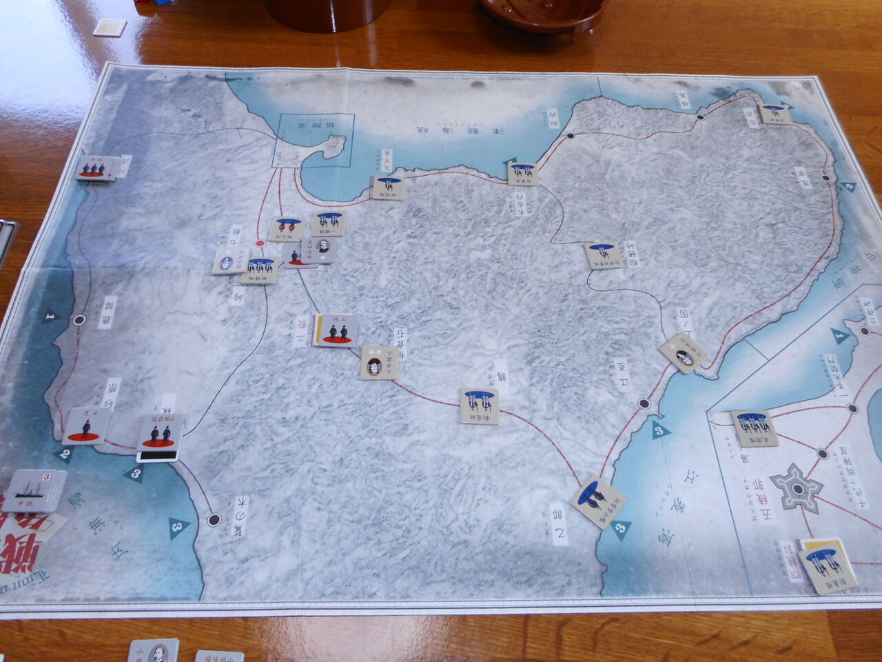 どうも新政府軍が厳しそうということで、第三戦は、再び、元の陣営で、Tommyさんが共和国軍で、mitsuが新政府軍です。勝利条件を一部緩和して、5カ所の拠点占拠ではなく、4カ所にしてみます。