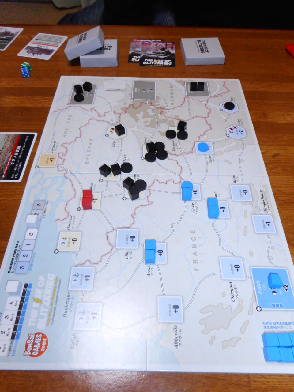 二つ目のアイテムが、昨年11月に発売されたばかりの「THE RISE OF BLITZKRIEG」(Bonsai Games)です。いわゆるデッキ構築型のカードドリブンですが、様々な仕掛けでランダム性が高められています。