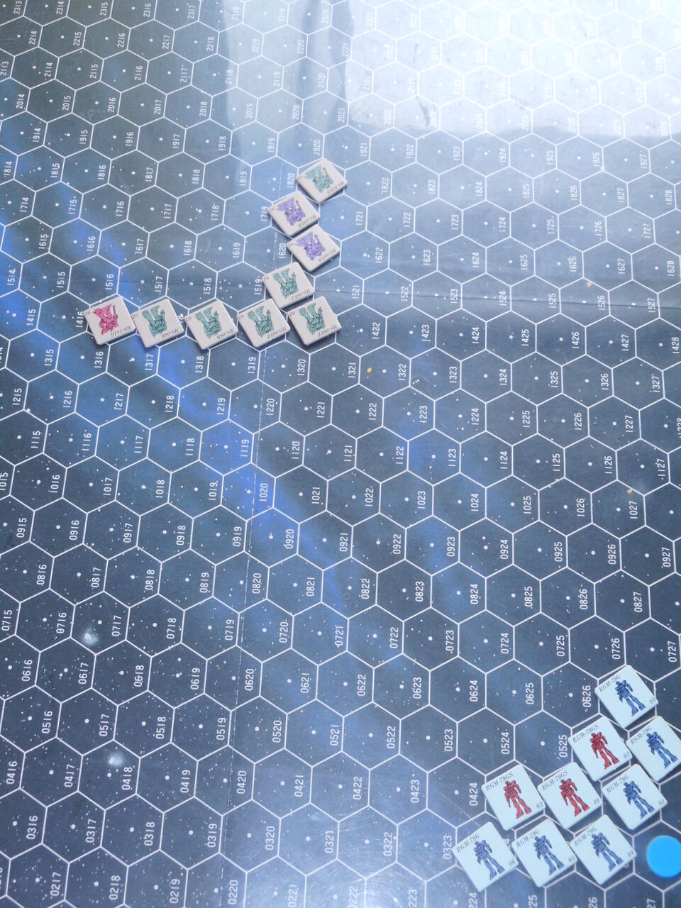 一方の連邦軍は、中長距離戦は不利なため、もっともサイド6に近い盤端に置きます。敵の出方を見て、うまく近距離に持ち込む計画です。