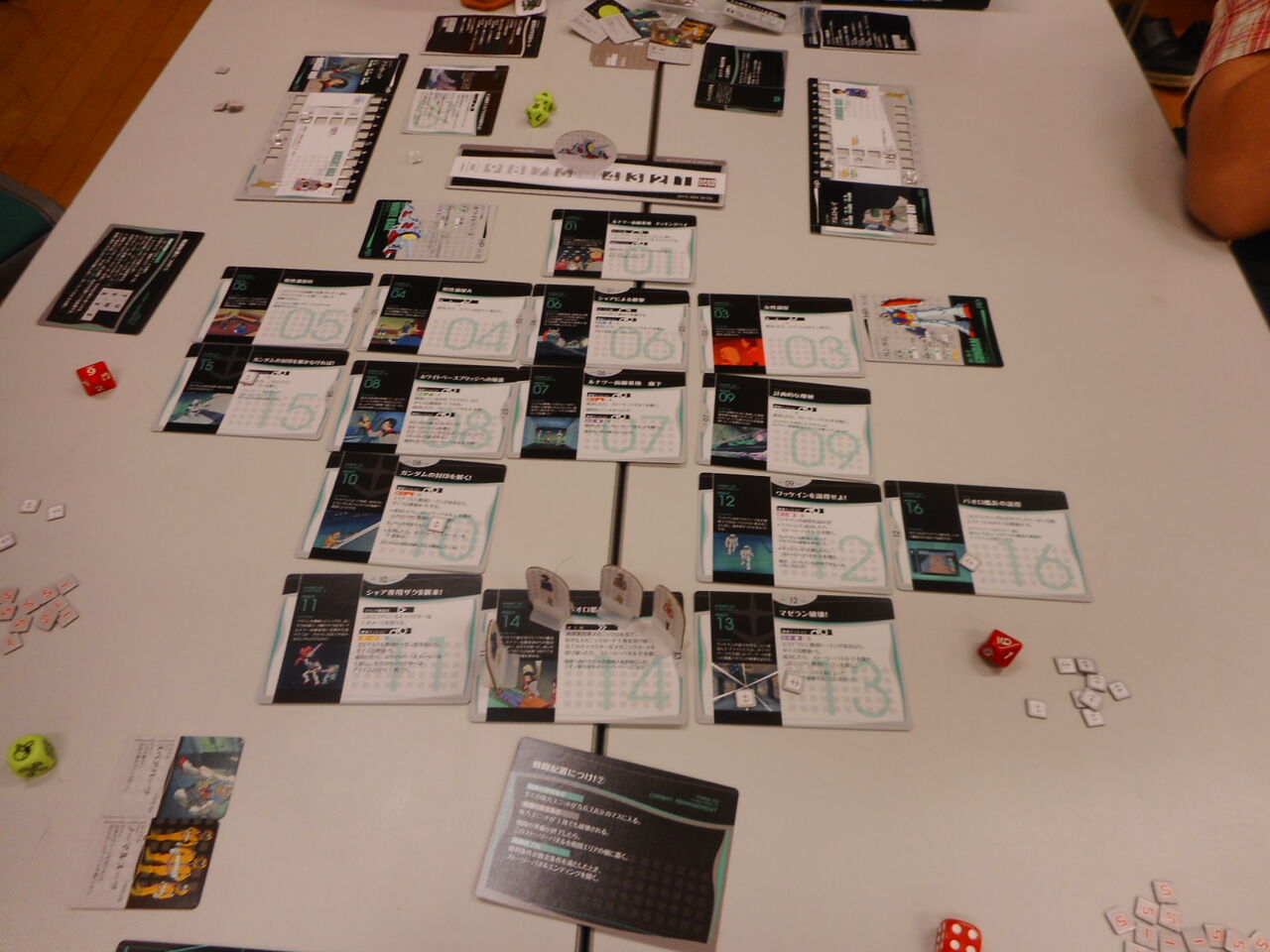 前回に引き続き、4人で「GUNDAM THE GAMES」(アークライト)のシナリオに取り組みました。フェイズ3は、「ルナツー脱出作戦」と「大気圏突入」です。アムロ(kawa)・ブライト(mitsu)・セイラ(BIBI)・リュウ(平)の選択になります。