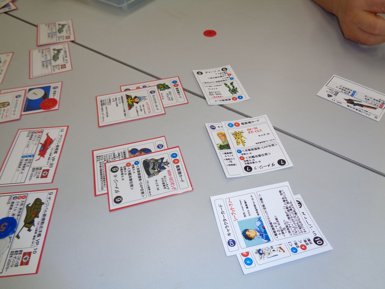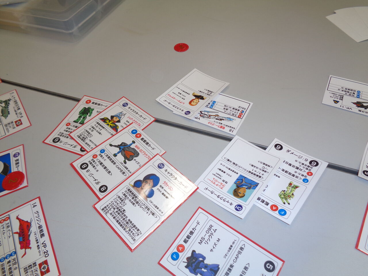 それから追加セットを導入したジオンor連邦はかなり強くなっています。艦載機Pが充実しているので、ガンダム系デッキ同士で対戦すると「誰を誰に当てるか」という読み合いが結構重要になってます。まあテストプレイ2戦目の時はララァを抑えきれなくて負けましたが(笑)