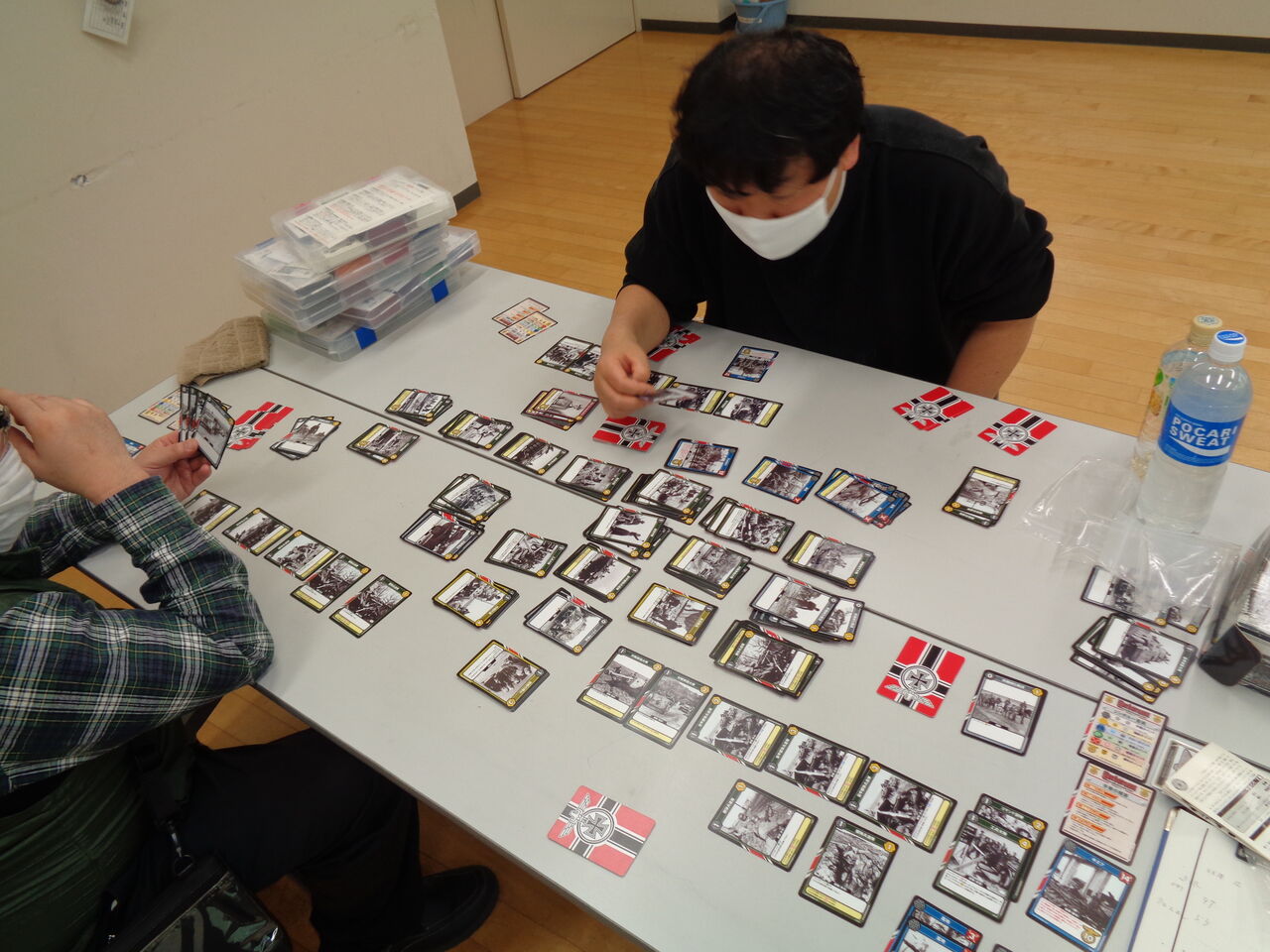 続いて、独ソ戦開戦80周年を記念して、ドミニオン系の「バルバロッサ」(アークライト)を3人で対戦します。かなり久しぶりで、ルールの勘違いもあり、お試しの後、本戦に。