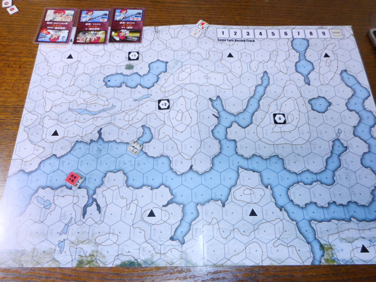このシナリオの基本レイラインは3ですが、「史実」のとおり、場所によって差があり、▲地点の2へクス以内では0-2の数値となります。