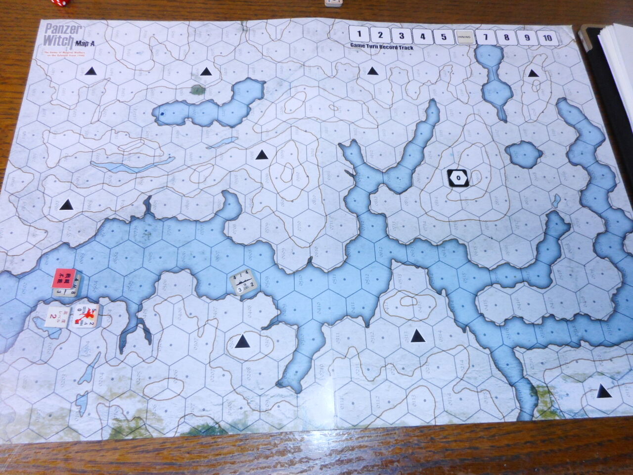 第8ターン以降、山地を縫って北上したイゼッタは、第10ターンに盤端から離脱し、完全勝利となりました。