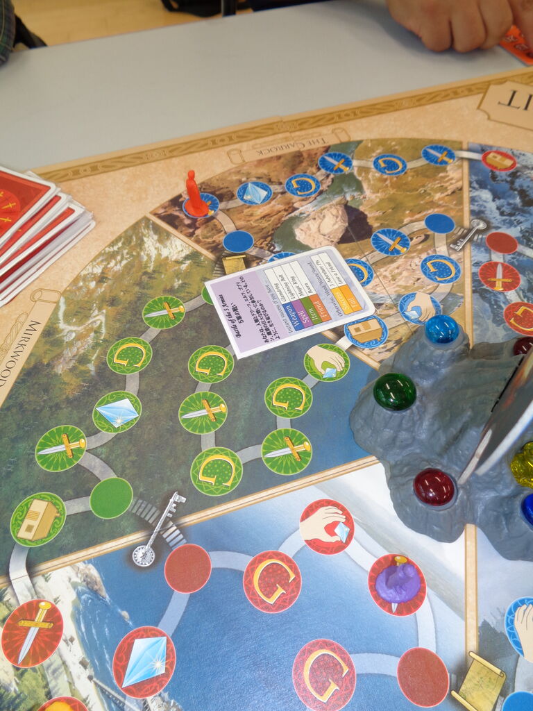 要領を飲み込んだ第2戦は、うって変わって、冒険点を稼ぐ旅に。mitsuホビットが先行し、うまくガンダルフの贈り物カードを使って、冒険をクリアしていきます。kawaホビットが続くもののカードの組み合わせが合わず、また、スピナーによる運試しも失敗して、冒険点は伸びず。