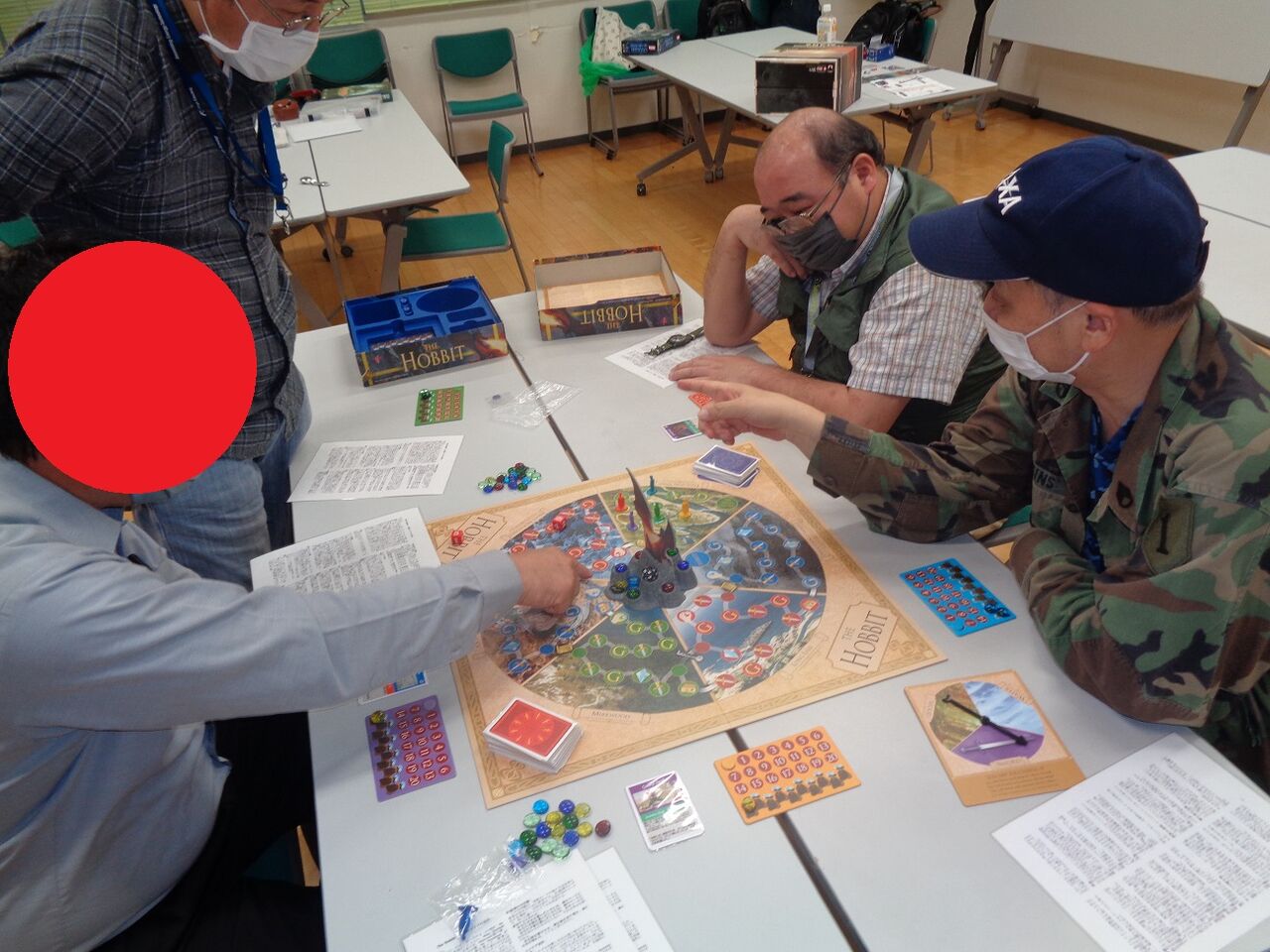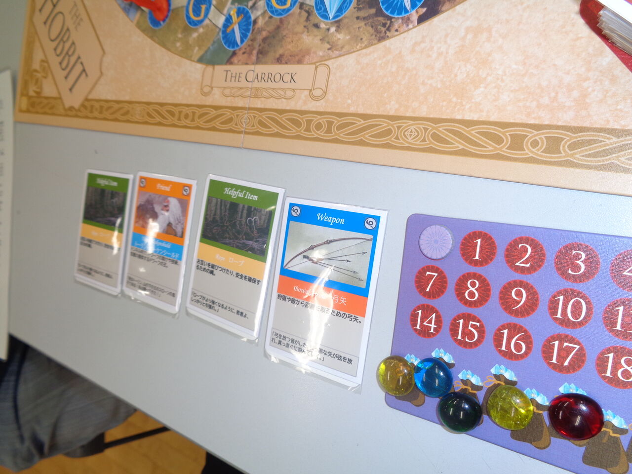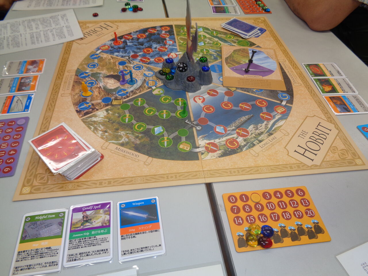次のゲームの合間にプレイしたのが、前回にも持ち込んだ「HOBBIT」(Sophisticated Games)です。いわゆるミッション解決型の双六で、6人までプレイできます。
