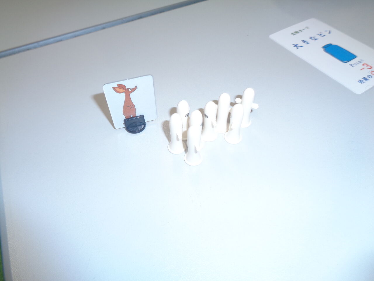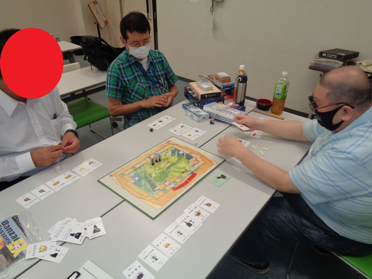 この日のイロモノNo.1が、mitsu持ち込みの「ニョロニュロ・フェスタ」(Papel Creation)です。ある季節になるとムーミン谷にあふれかえるニョロニョロを捕まえるという、双六です。プレイヤーは、スナフキンやノンノン、スニフなど、各キャラになります。