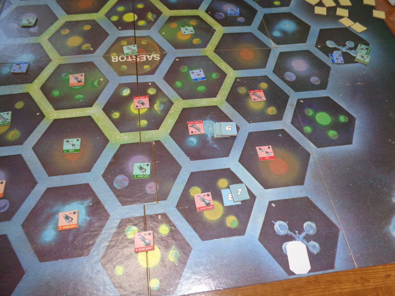 早速、2人でプレイしましたが、初めのうちは若干の読み違えで、機動要塞が追走を始めます。が、ゲーマーだけあって、すぐに予想を絞れるような配置を連発し、次々と宙域を埋めていきます。結局、機動要塞が迫るまもなく、最後の宙域が探査され、プレイヤーの勝利となりました。