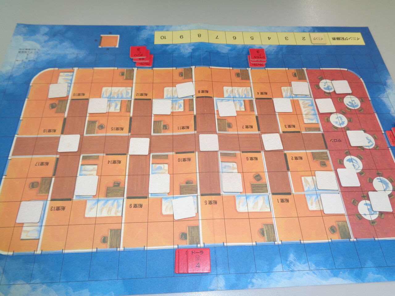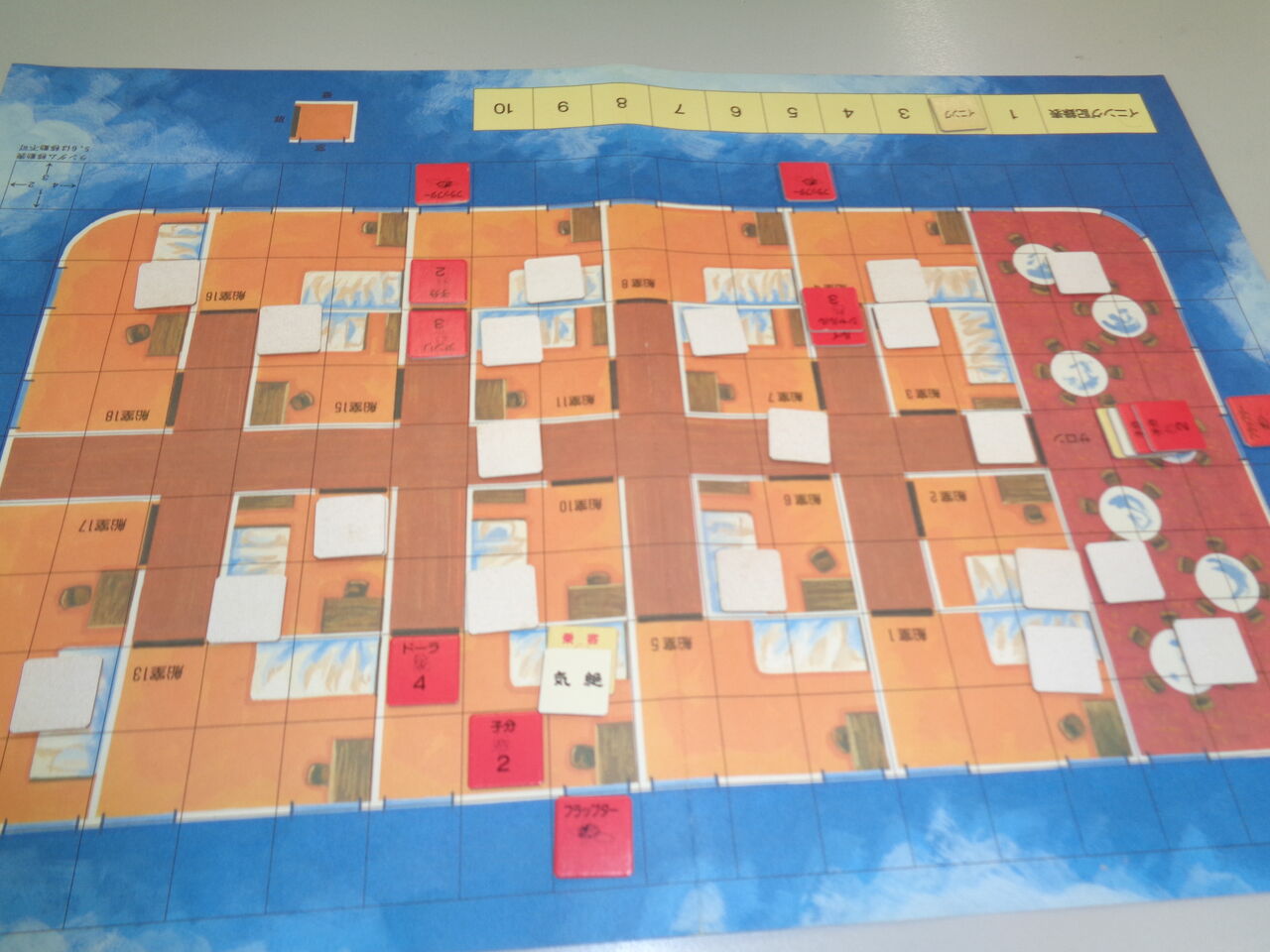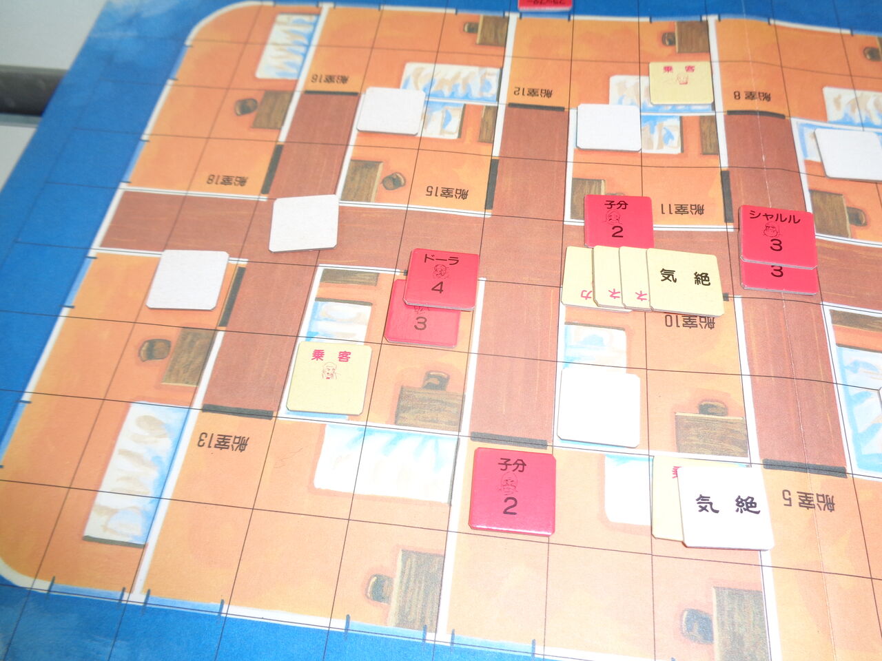 序盤に、海賊側が敵の主力を制圧(気絶)したので、楽勝かと思いきや、敵が守りを固めていた部屋はブラフ。必死に捜索するも、あと一歩(後1ターン)足らず。