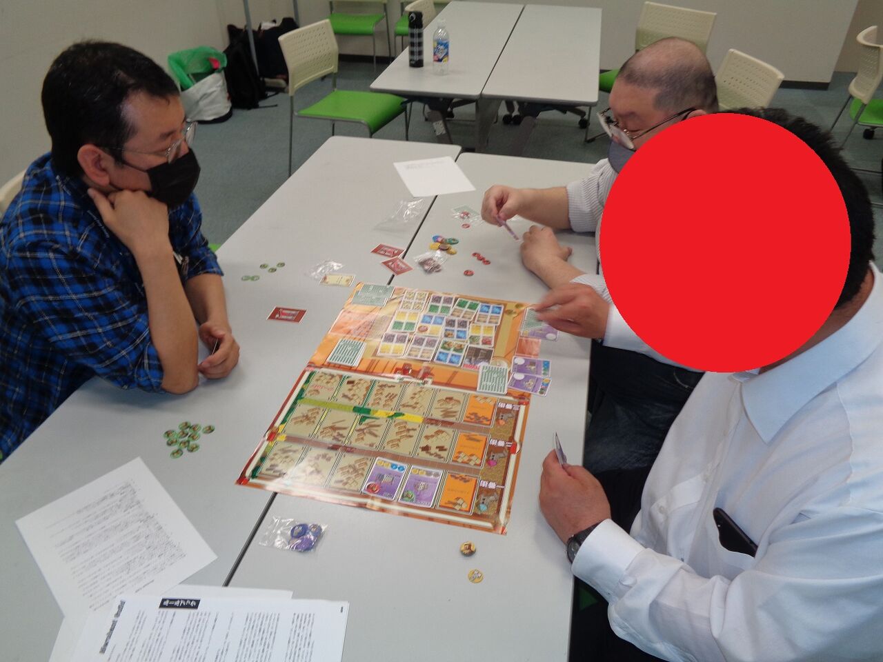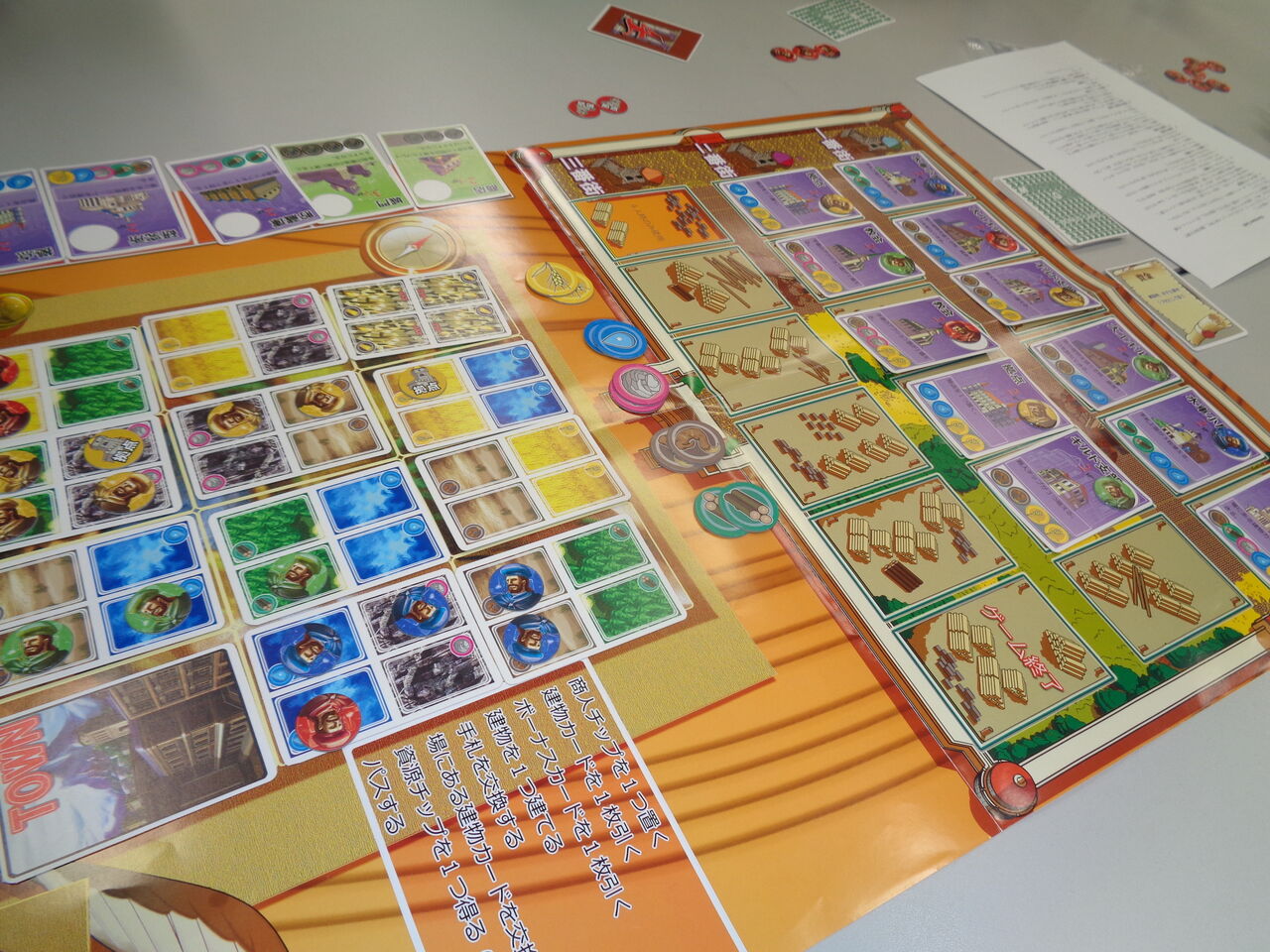 この日の緒戦は、シンプルなファミリー系アイテムの「Merchant Guild」(Game Link)です。「Game Link」という雑誌に載った付録で中世の町の建設を描いていますが、プレイ時間30分とお手頃です。詳しくは、こちらをご覧ください。