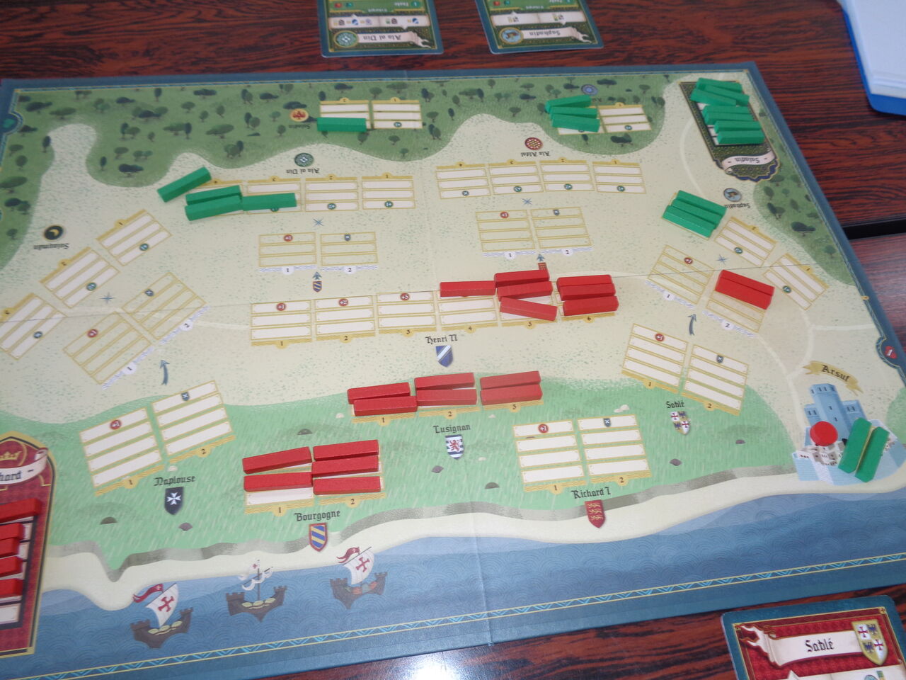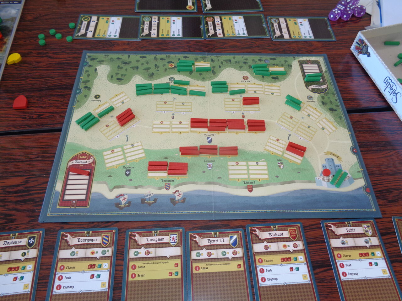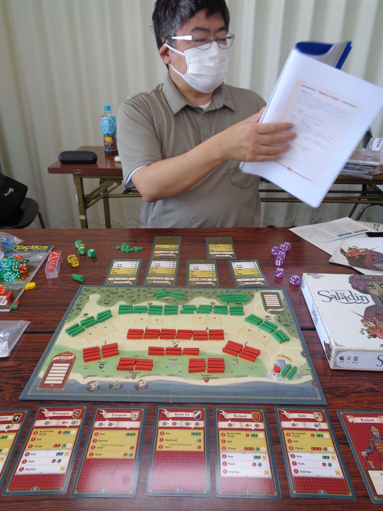 続いて、moritaさん持ち込みの中世の会戦級「サラディン」(SHAKOS)からアルフスの戦いです。十字軍率いる獅子王リチャードとムスリム軍を率いるサラディンの会戦を描きます。