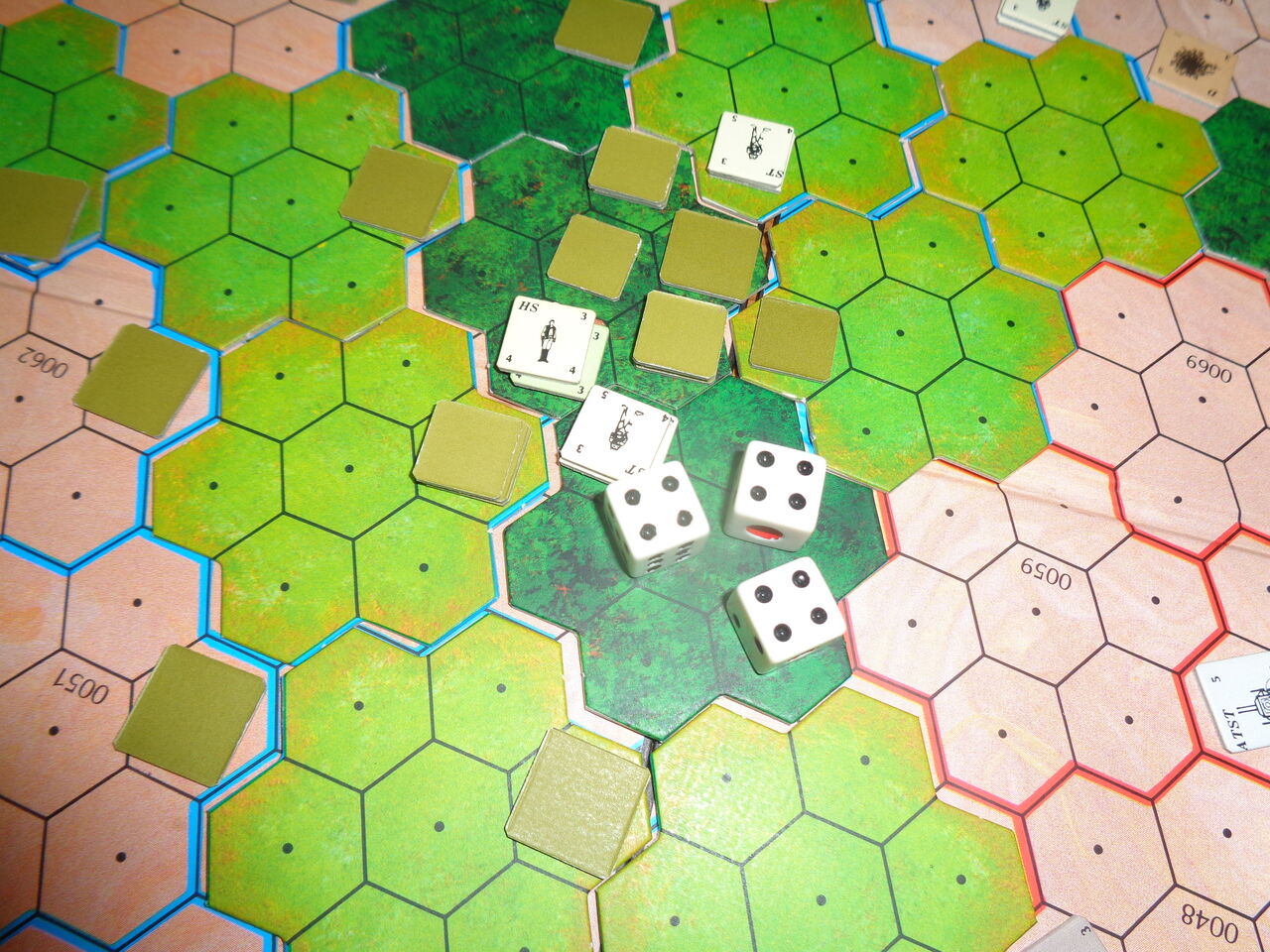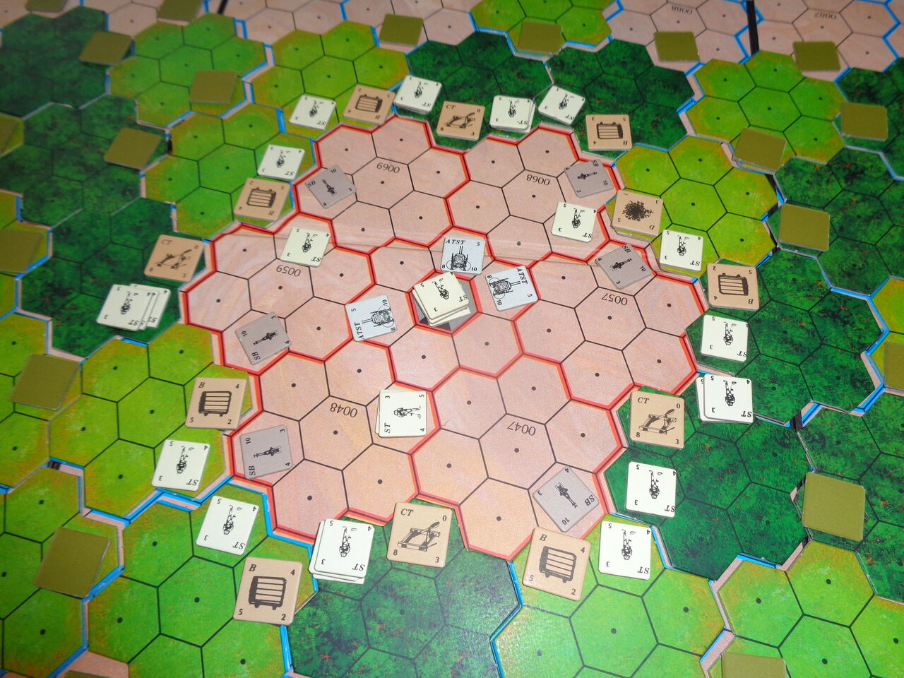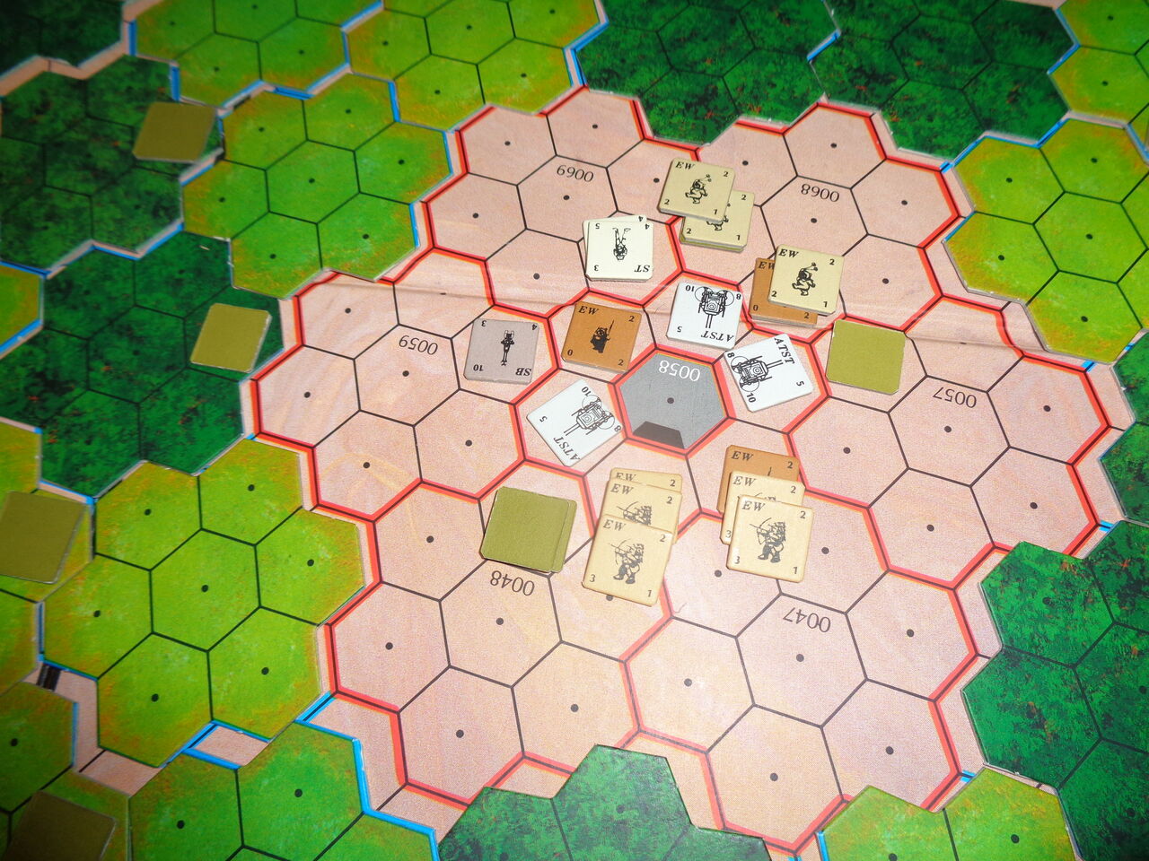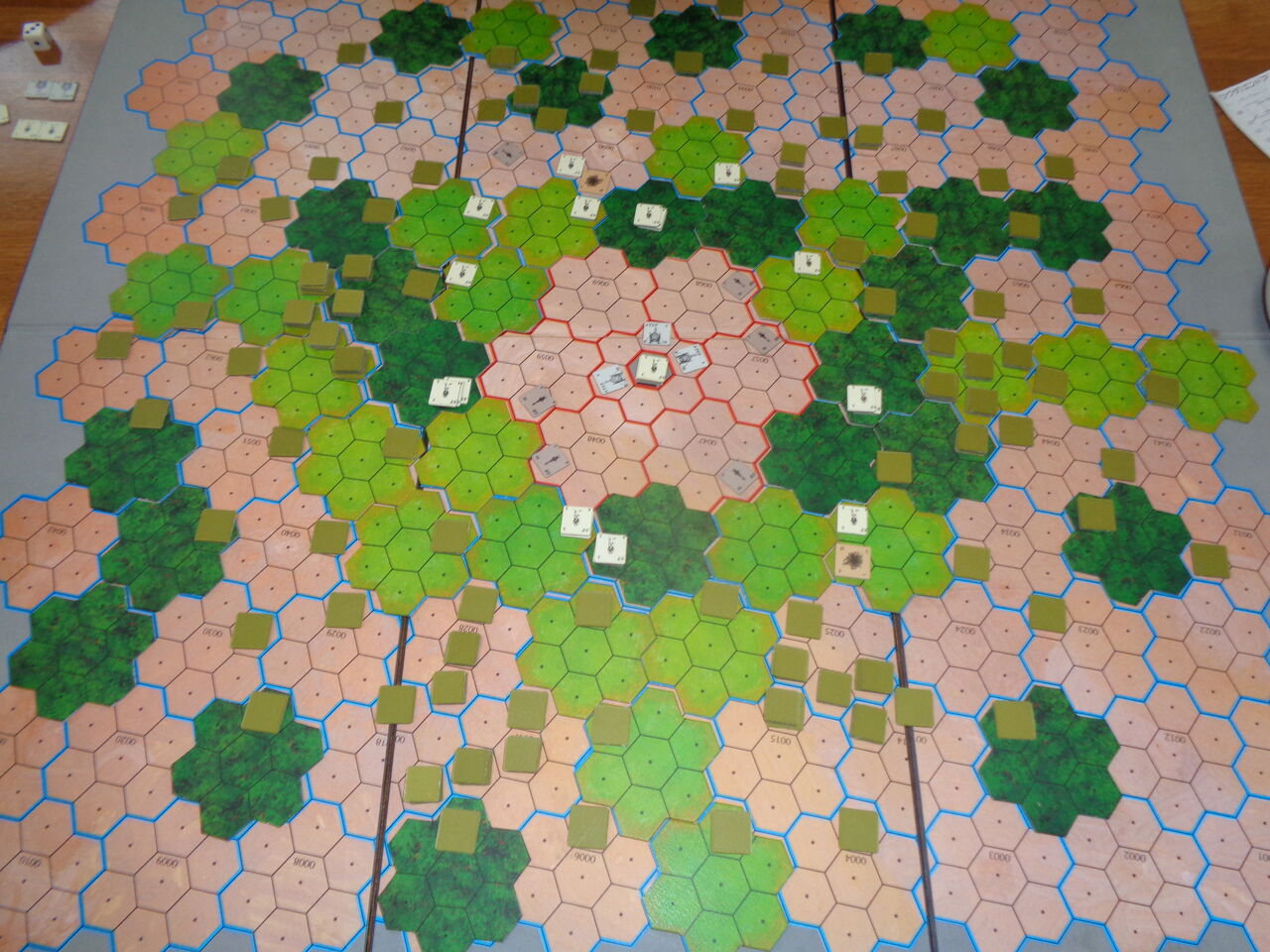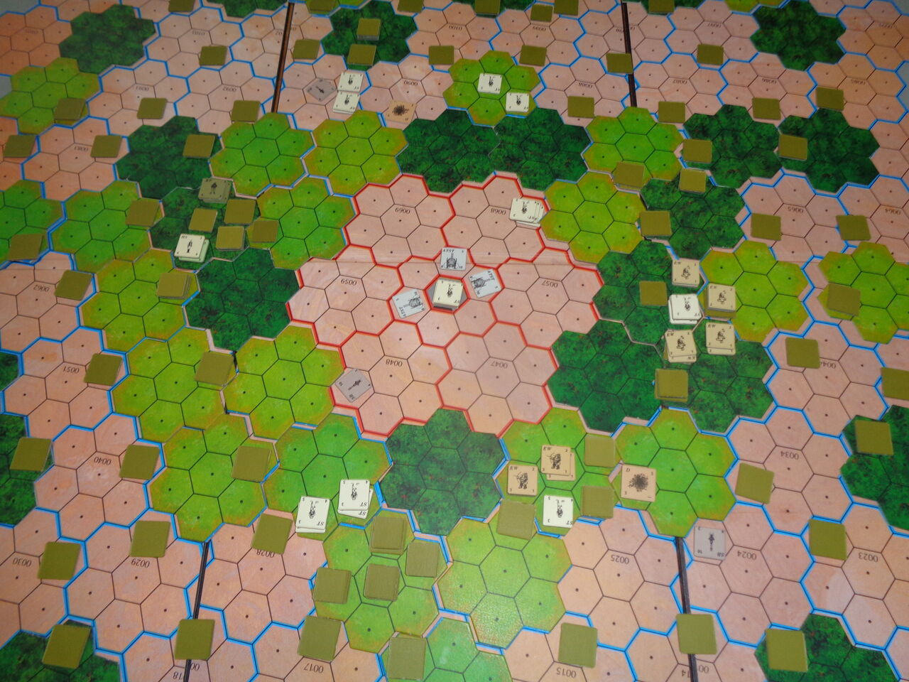 ・帝国軍は最低30メガへクス(司令部入口周辺の7メガへクスを含む)の安全を確保しなければならない(勝利条件)。そのためには、このメガヘクスのトラップ(ダミーを 含む)を全て明らかにする。