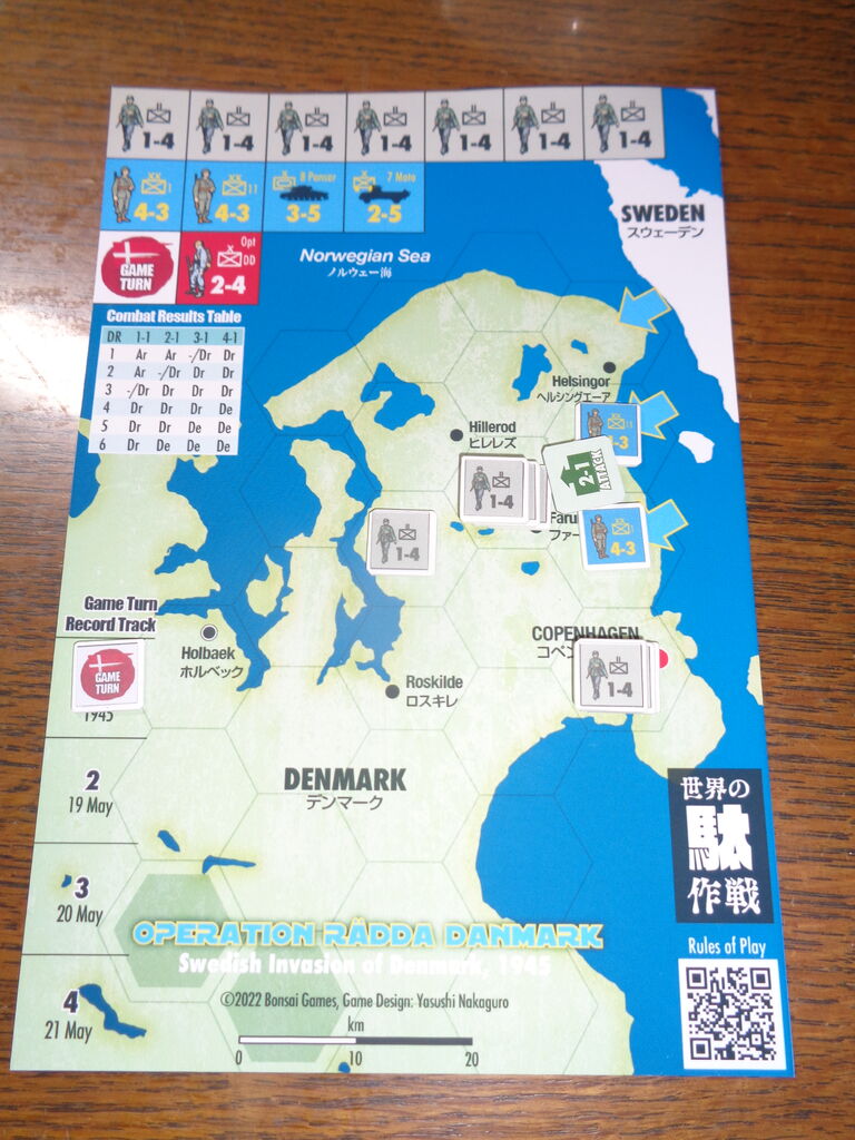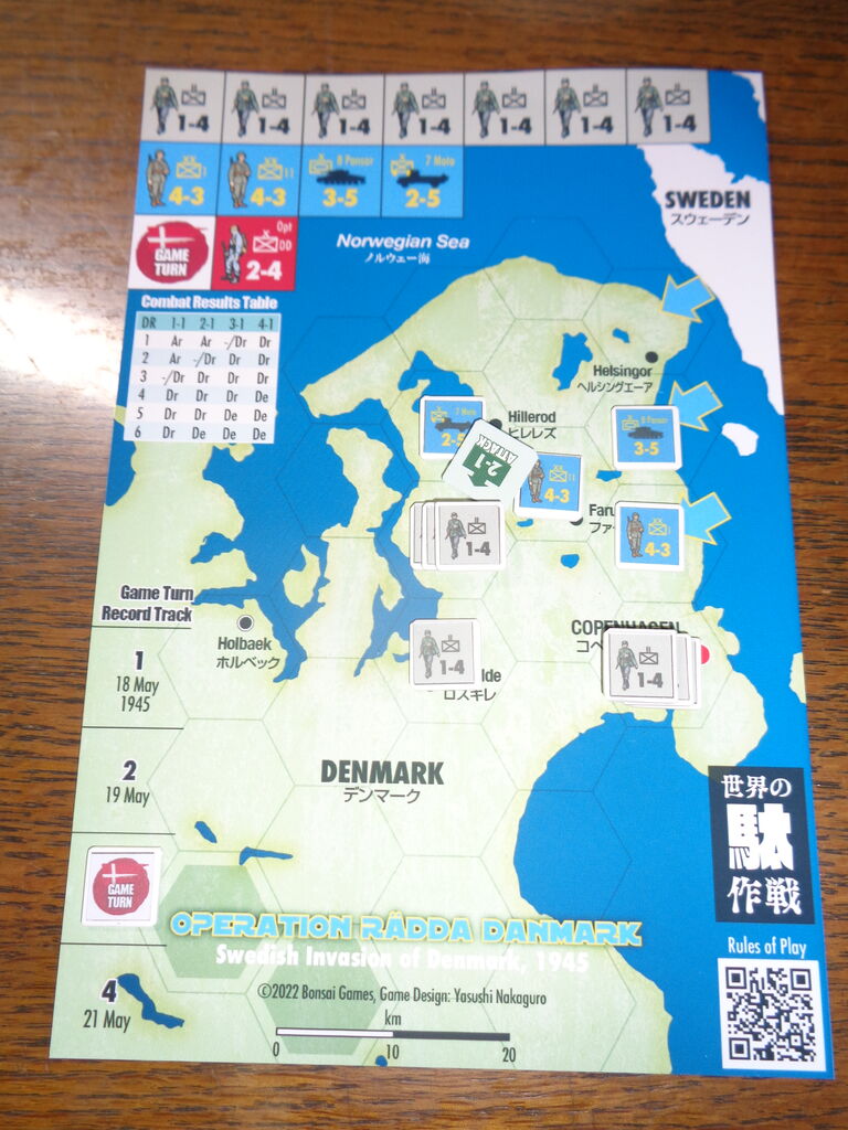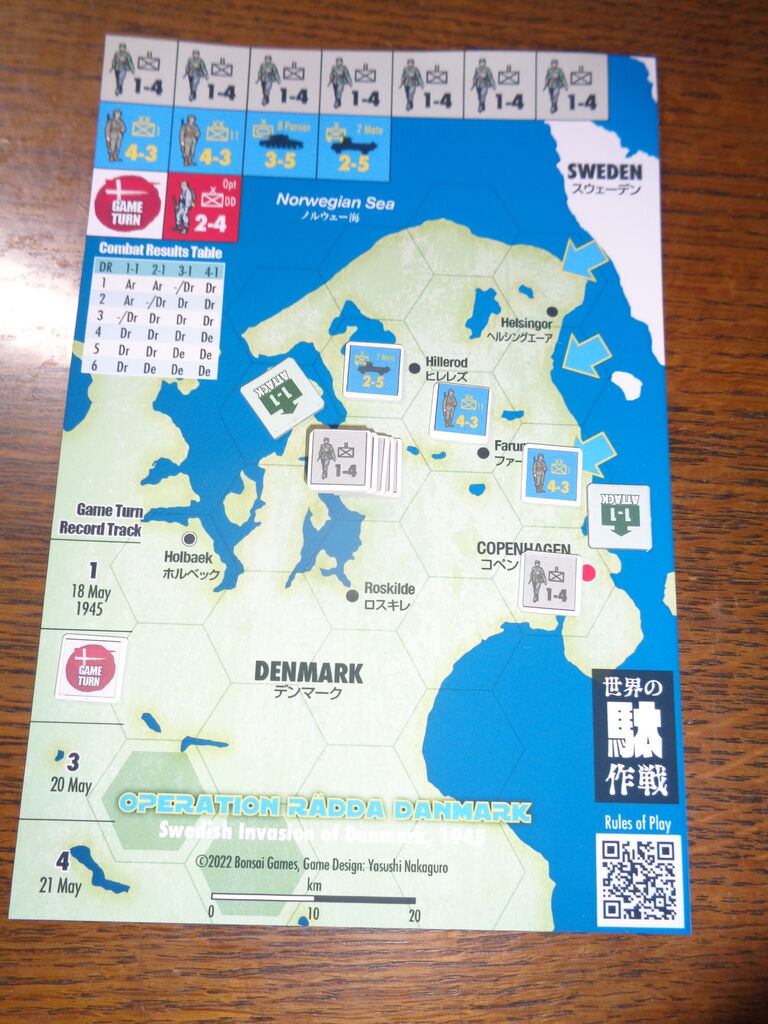 今月のソロプレイ第1弾は、Bonsai Games最新作の「ラッダ・デンマルク作戦」です。現在、本邦で最もアグレッシブな出版を続けているBonsai Gamesですが、隙間を狙ったはがきゲームも発表しており。早速、ダウンロードでソロしてみました。