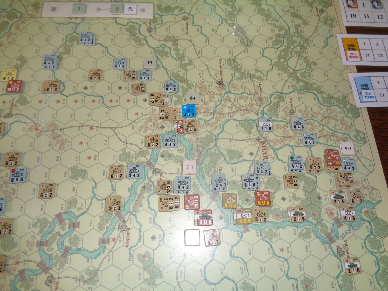 延べ3時間のソロ演習でしたが、今さらながら、こいつは面白い!ソ連軍の数を恃んだ怒濤の攻撃とドイツ軍の類い希な軍事能力の反撃が、見事!1ターンが通常の3倍あり、かつ、戦闘にも時間がかかるため、近年だと重ゲー扱いでしょうが、これこそ、東部戦線の作戦級という楽しいプレイでした。