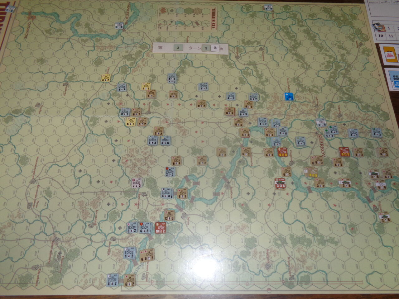 今回は、導入となるシナリオ1「飢えた群狼のように」です。が、導入と言っても、実質は通常の6ターン分に当たるわけで、2時間では片は付きません。その分、プレイ自体は、非常にエキサイティングで、十分にやり甲斐があります。