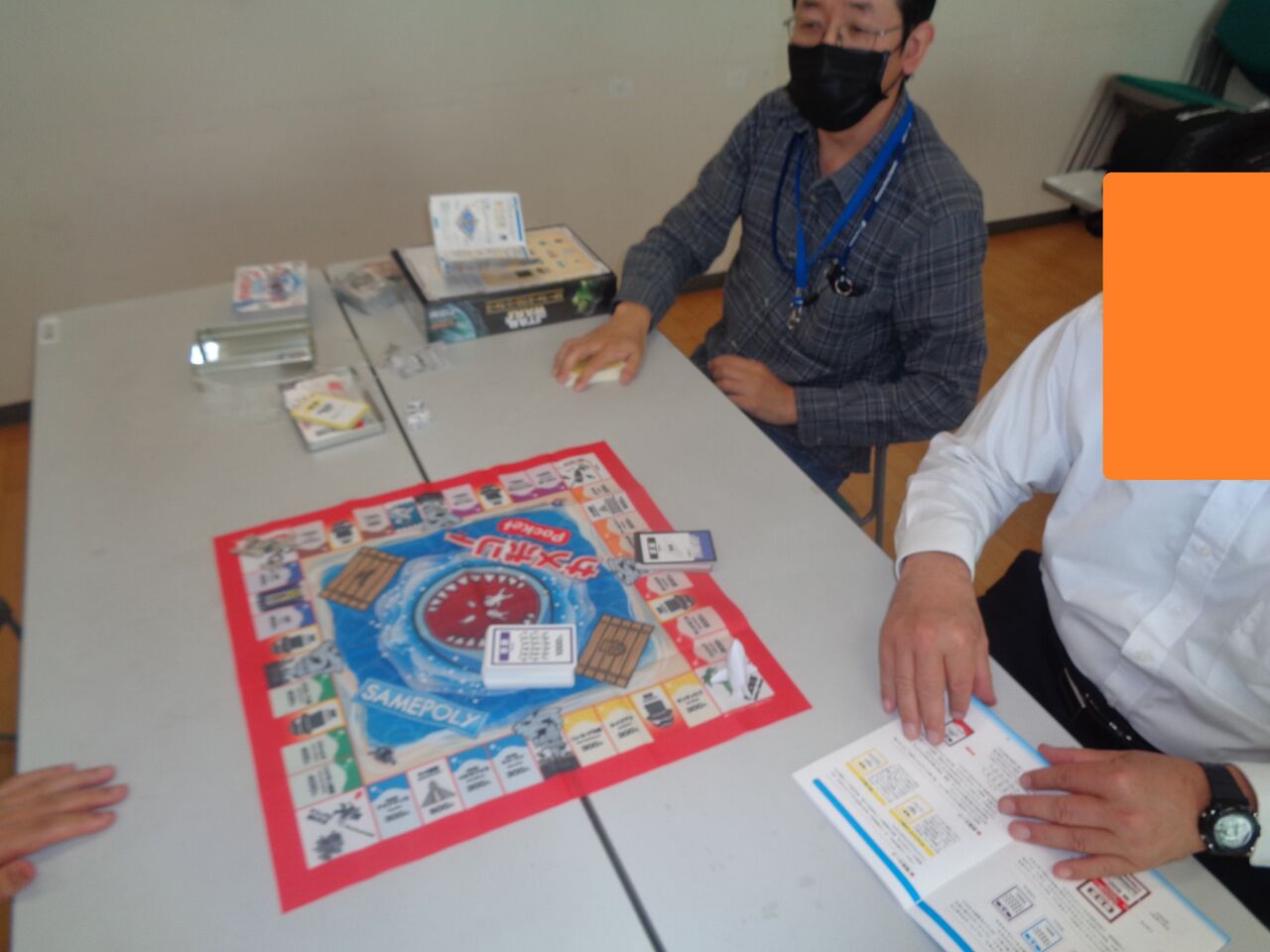 どう見てもモノポリーですが、巨大鮫の襲来と撃退を描いた「サメポリー」(SOLID GAME)。こちらも、BIBIさんがゲムマで仕込んできまして。BIBI・エンジョウ・kawa・fhoの4人でプレイし、所有者のBIBIさんが勝利に。