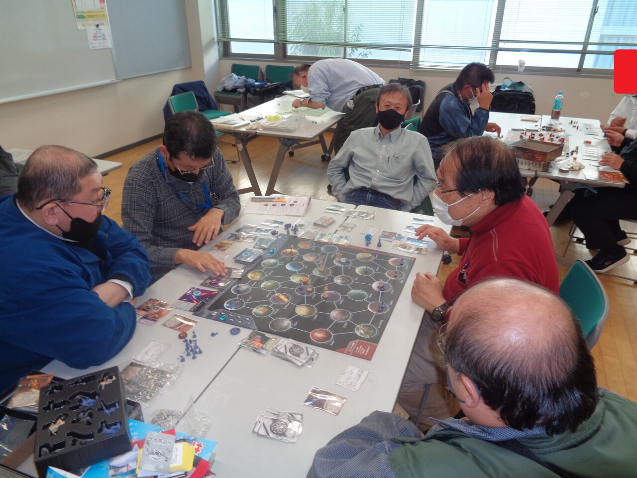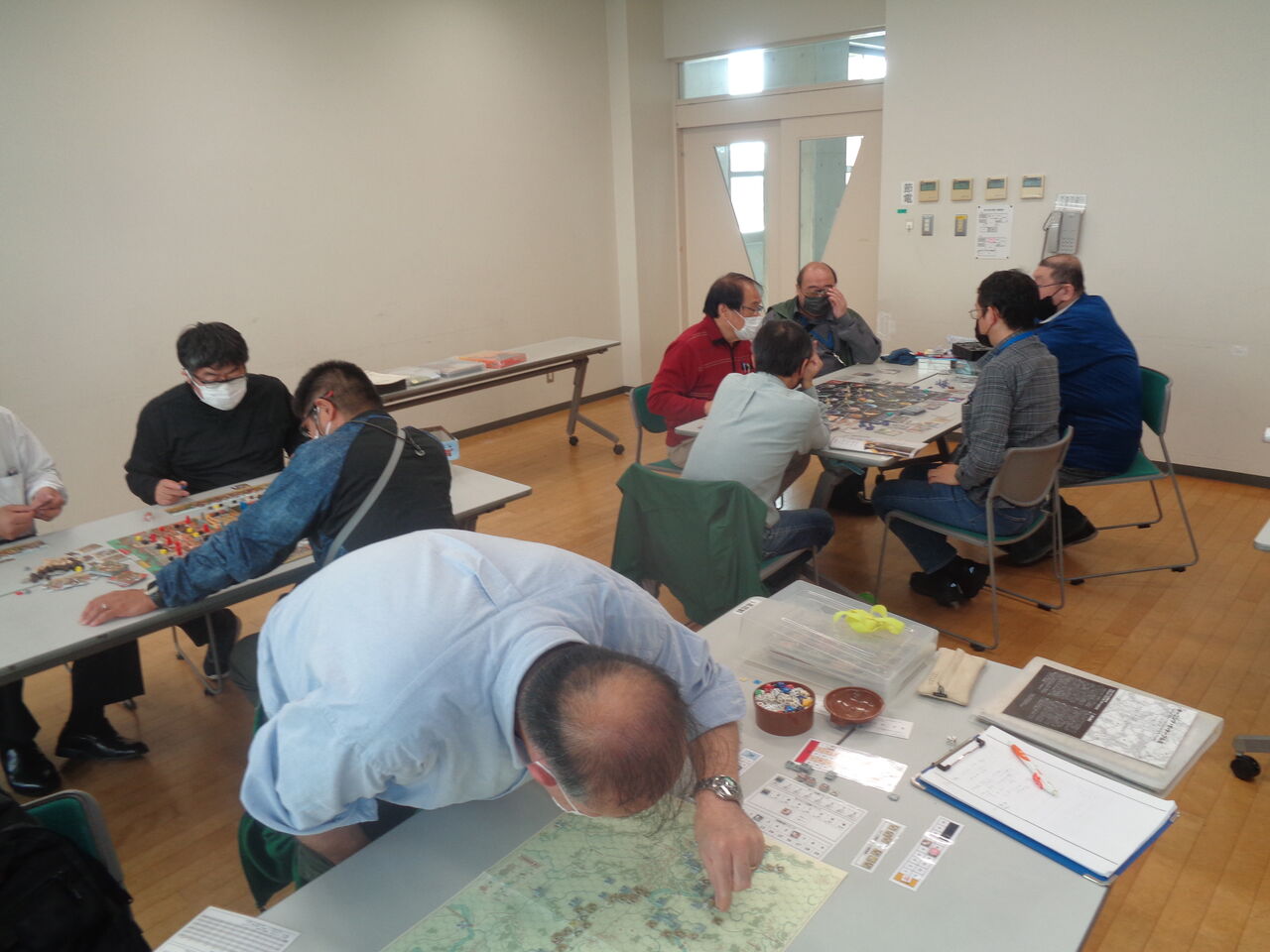 初参加の龍安寺さんは、常連のmoritaさんと国防話に花を咲かせ、夕方までマルチを楽しみ。東京から来てくれたいのさんは、初のパンデミック系を体験し、その後、悩み多きCDSの「続・八甲田山」(Bonsai Games)をTommyさんと対戦。ドイツ系が得意なBIBIさんは、ゲムマの戦利品を持ち込み。マルチ三昧に、ドイツ系、ハードSLGまでと、実にちはら会らしい幅広ジャンルでした。