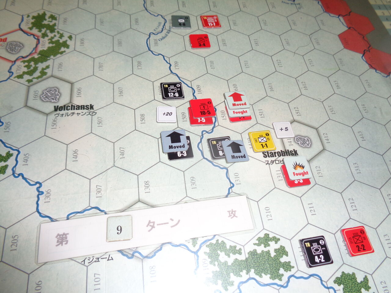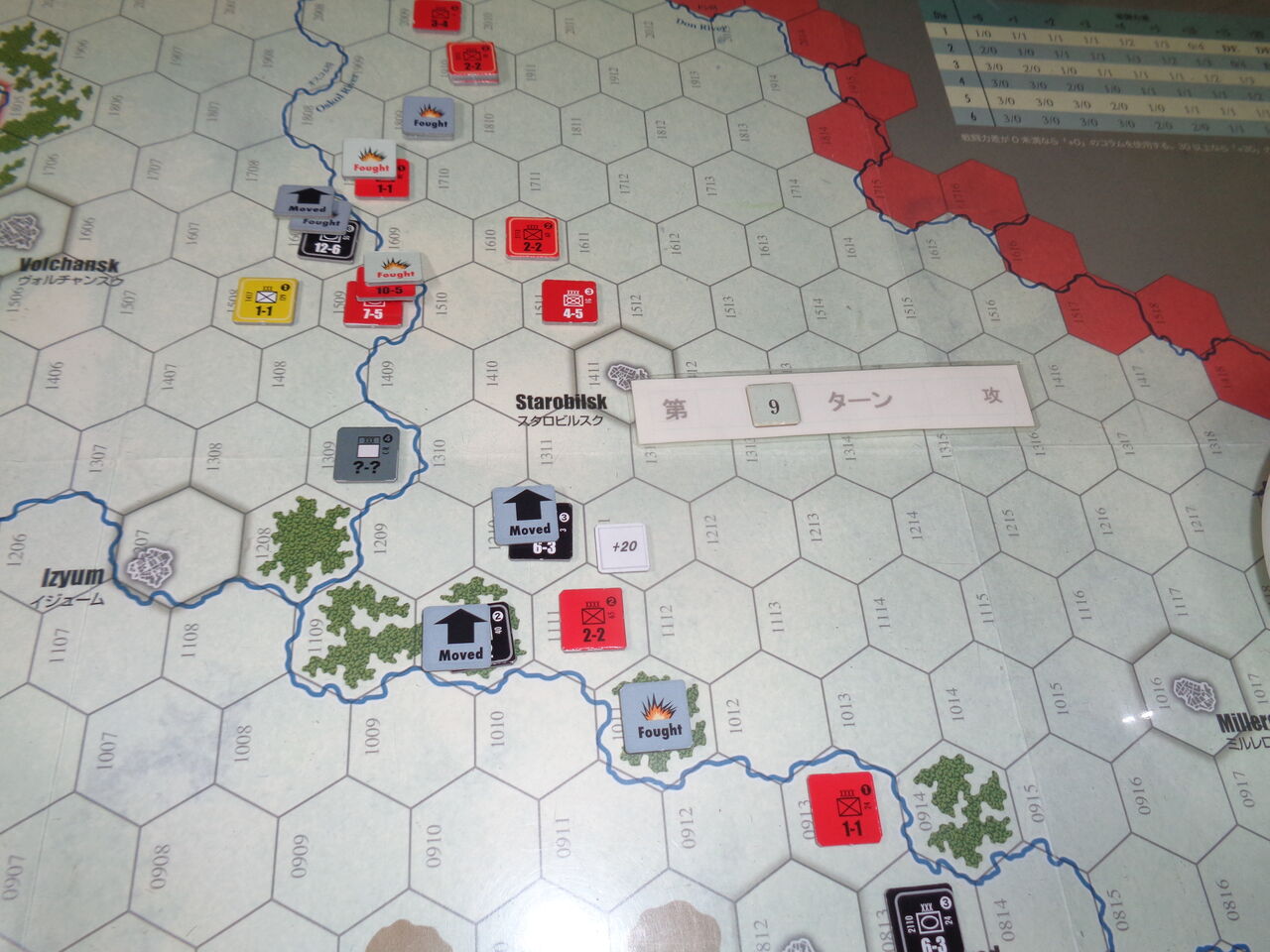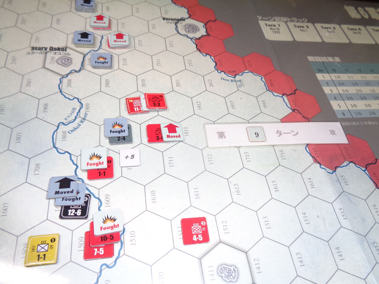後1ユニットでも除去されると、戦線崩壊となりかねない状況でしたが、ドネツ河畔に陣をはるイタリア軍が+5の攻撃を撥ね除け、ギリギリで戦線を維持します。
