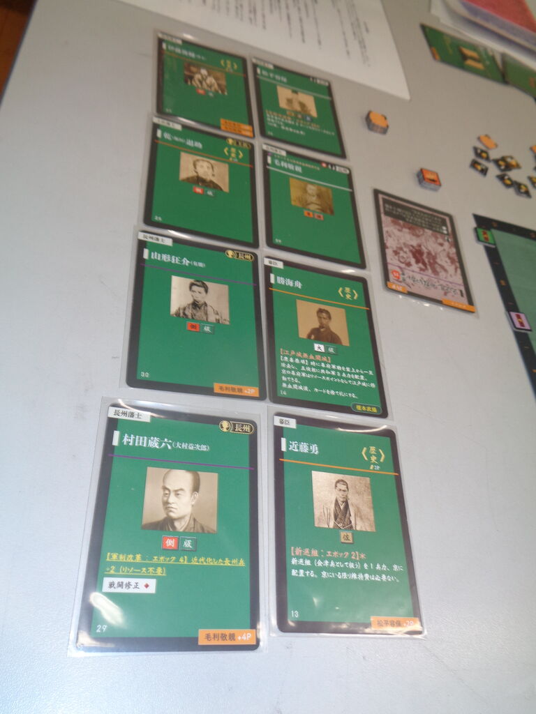 風見鶏さんは豊富な手札で長州と会津の二刀流で、時代を巧みに渡り、トップで第3ターンを終えます。