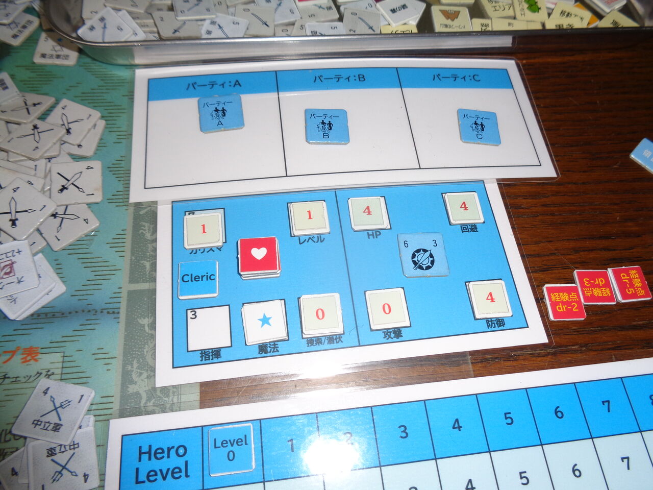 第2ターン、レベル6のダンジョンでタランチュラに遭遇し、これを倒して、ヒーローレベル2へ。成長drはANYの結果になったので、先を見越して、上がりにくい回避値を最大の6にしておきます。これなら、敵の魔法はほぼ凌げるはず。