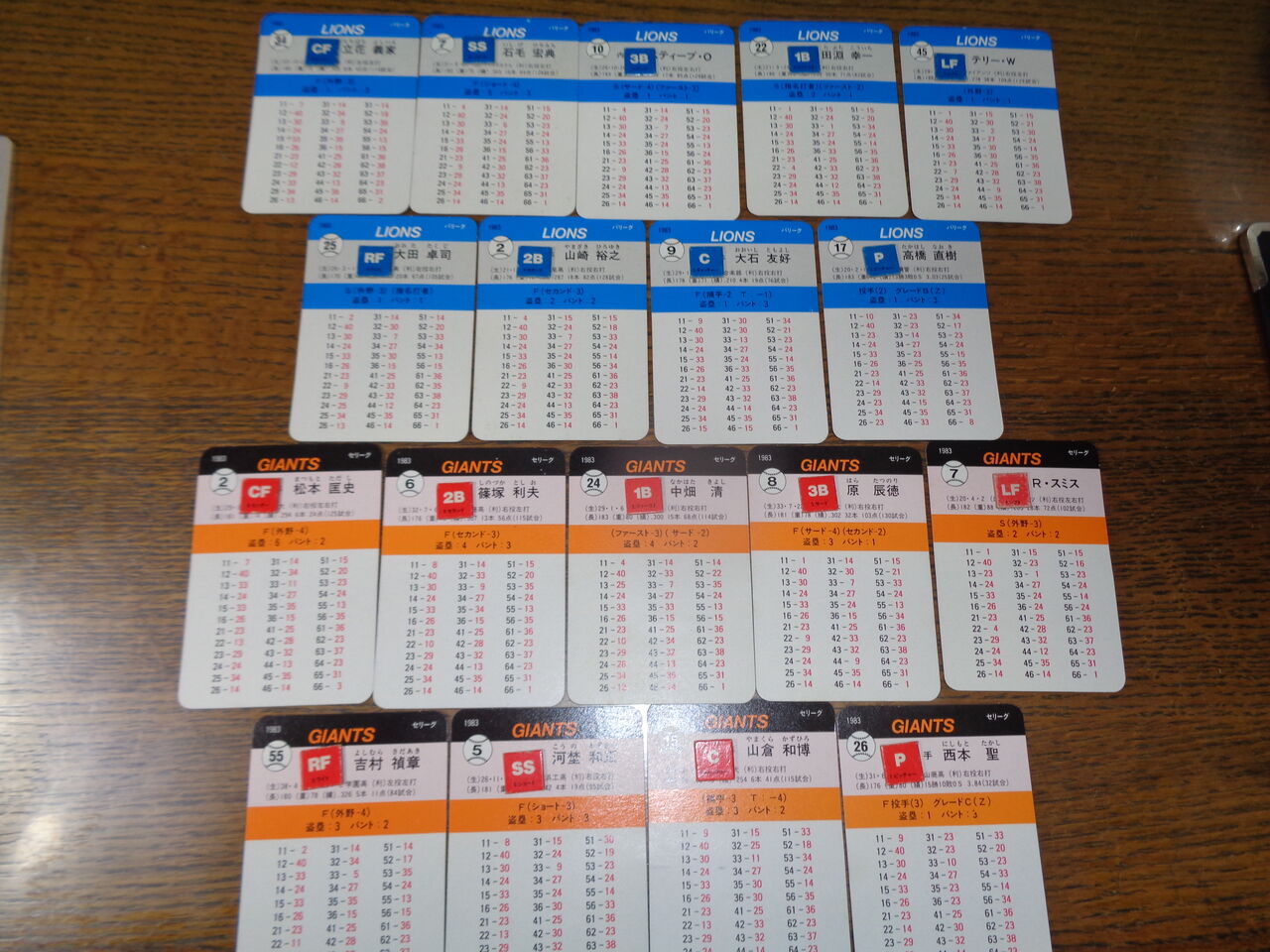 西武ライオンズは、先発の東尾、松沼兄弟、高橋のグレードB が4名と絶対的な抑えの森(A&C)という強力な投手陣です。打撃では、俊足石毛に、シュアな打撃の立花、山崎、スティーブに、一発のある田淵、テリー、太田と隙がなく、様々な形で得点が取れる優勝チームです。監督は、西武の黄金時代を築いた名将広岡達朗です。