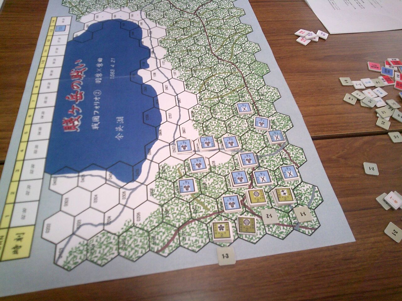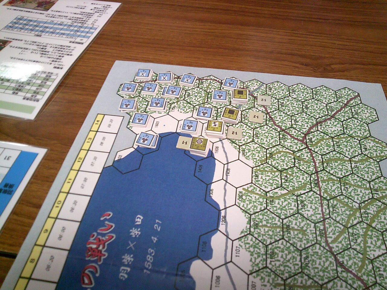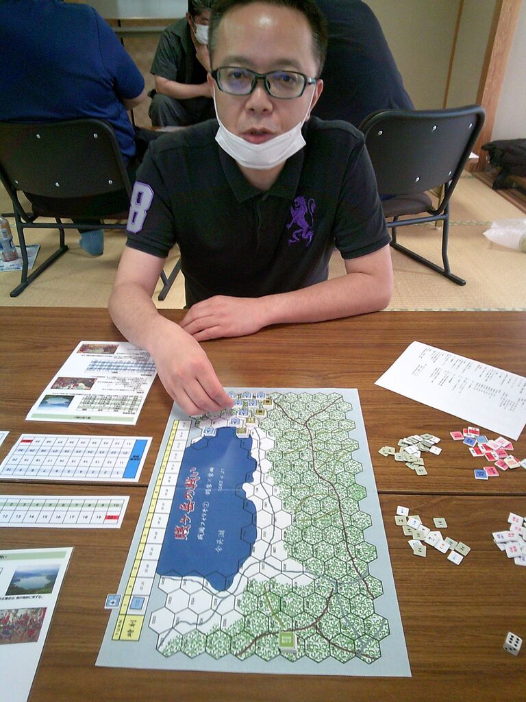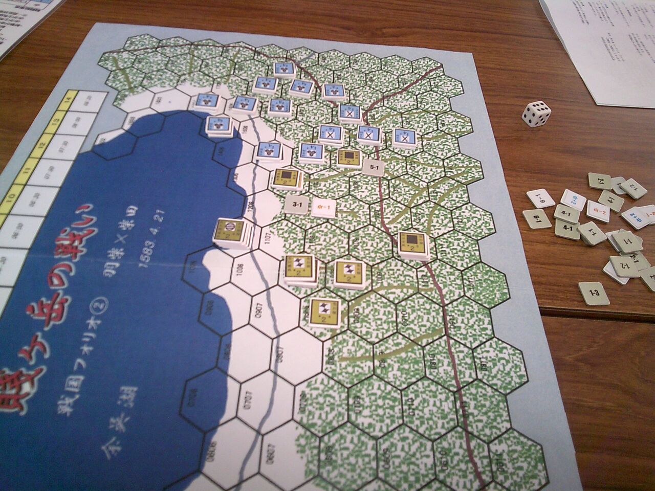 前々回から参加いただいているohaさんのリクエストで、「賤ヶ岳の戦い」(ルーデンス・フェベル)を対戦しました。ゲムマで手に入れた合戦級なんですが、正直、いかにも同人然とした見た目からたいしたことはないだろうと、思っていたのですが・・・ソロをしてみたら、シンプルなのに面白い!しかも、様々な戦場にも適用できる汎用性の高さ(とデヴェロップメント)。