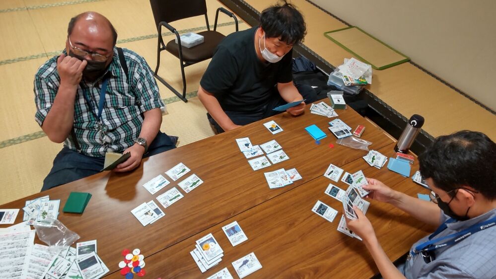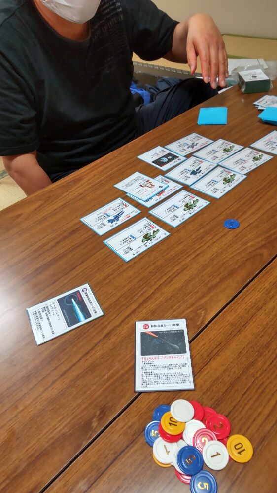 この日の最後に取り組んだのが、「Ships&Tactics」(グループ乾坤一擲)です。今さら、説明の必要ない、ちはら会の定番です。陣営は、自由惑星連合軍(kawa)・自由惑星連合軍マル・アデッタVer(BIBI)・ザンスカール帝国(mitsu)・三隻同盟(平)です。