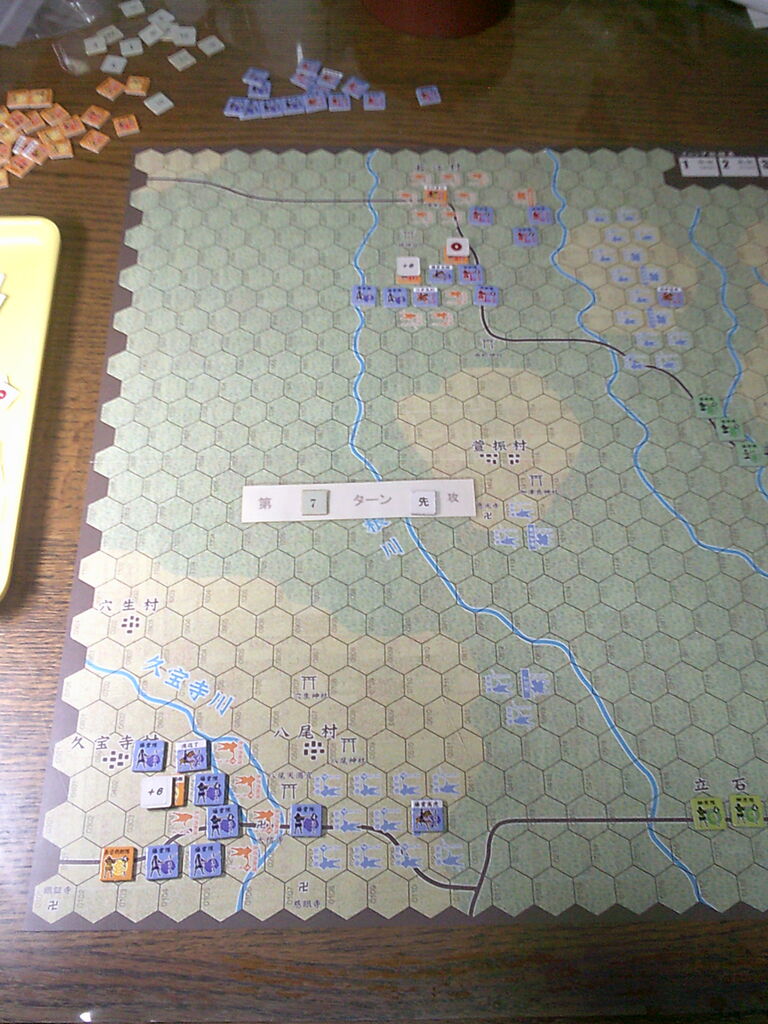 八尾方面でも、白兵戦で1ユニットを除去し、長宗我部隊の2ユニットを包囲下に。