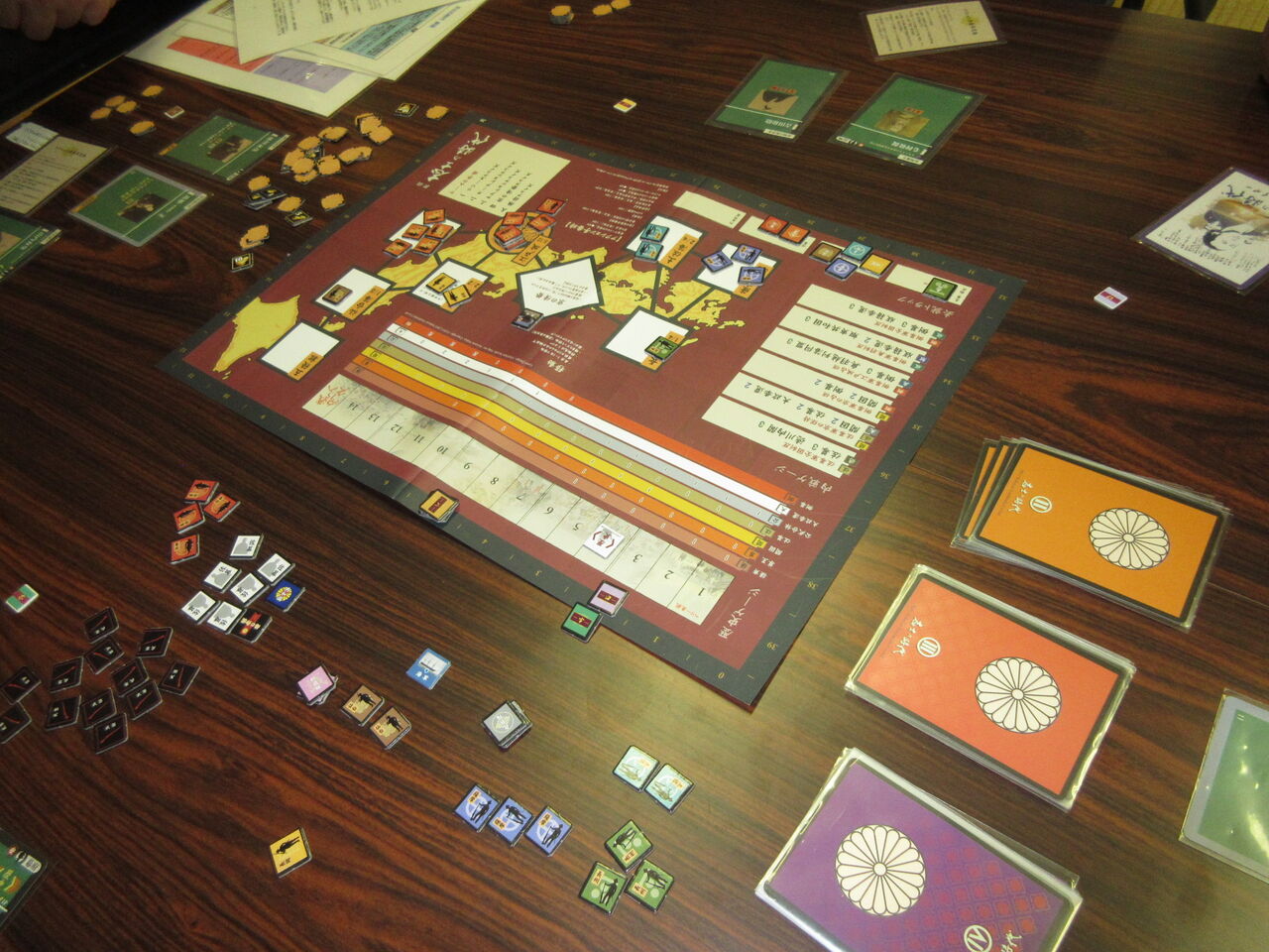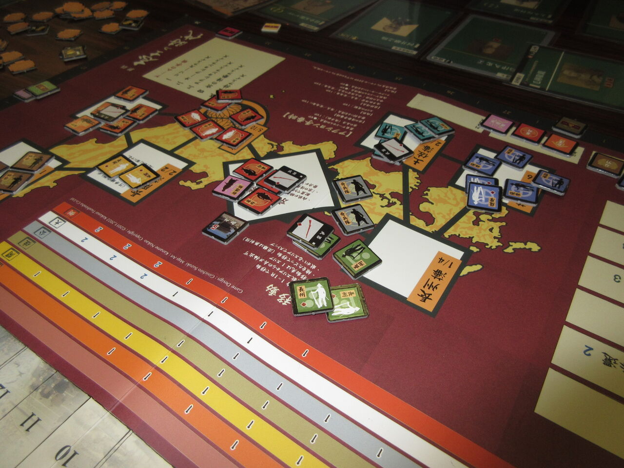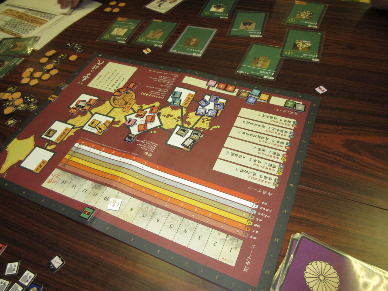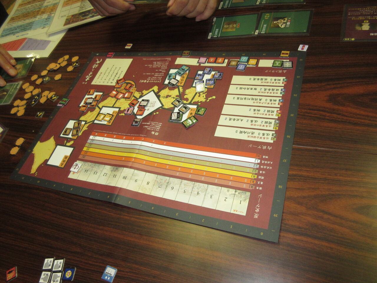 この日の最後に取り組んだのが、「志士の時代 新版」(WGJ)です。オプションの黒幕ルールを入れて、BIBI・morita・平・J・mitsuの5人でプレイします。