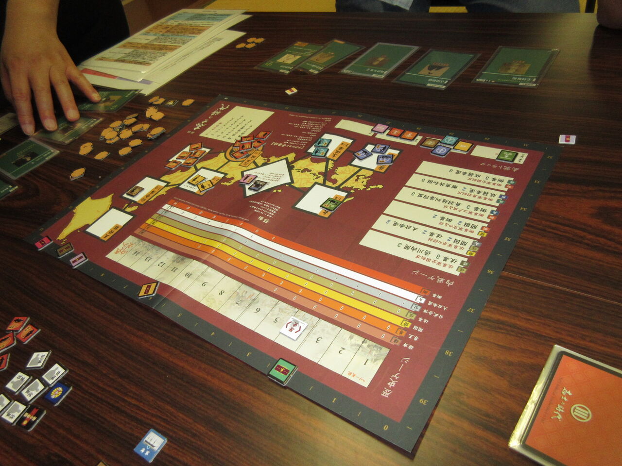 迎えた最終の第4エポック。これが最後と、人物ビットにも力が入り。特にBIBIさんは強力とは言えないキャラを多く集めていましたが(ガヤばかり?!)、残りわずかのところで河合継之助が来て、大いに迷うも大枚を叩いてゲット。と、直後に、本当は欲しかった村田蔵六!思わず、「あっー!」「ああー!」と雄叫びがこだまして。よほど欲しかったのでしょうけど、みなは大笑い。