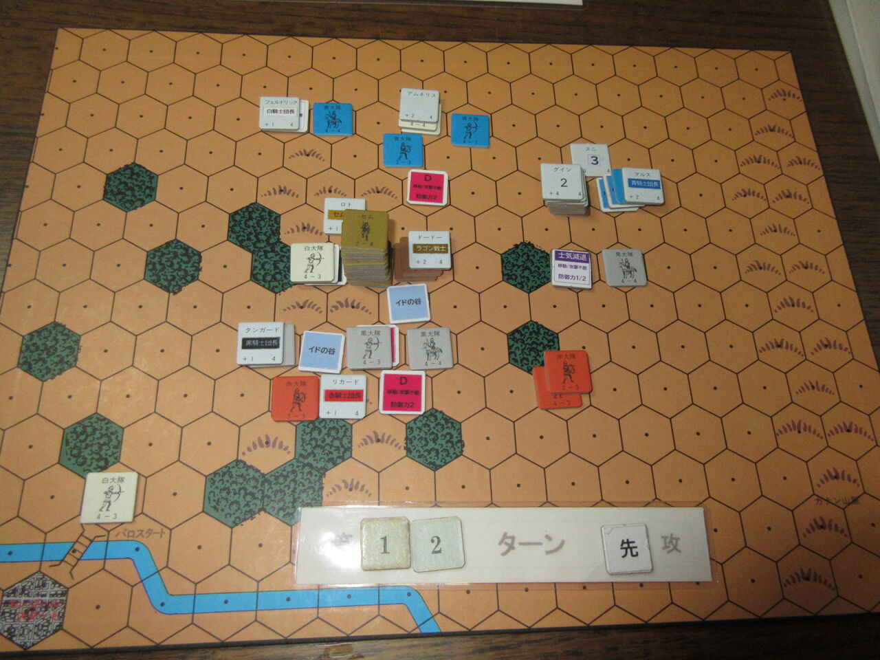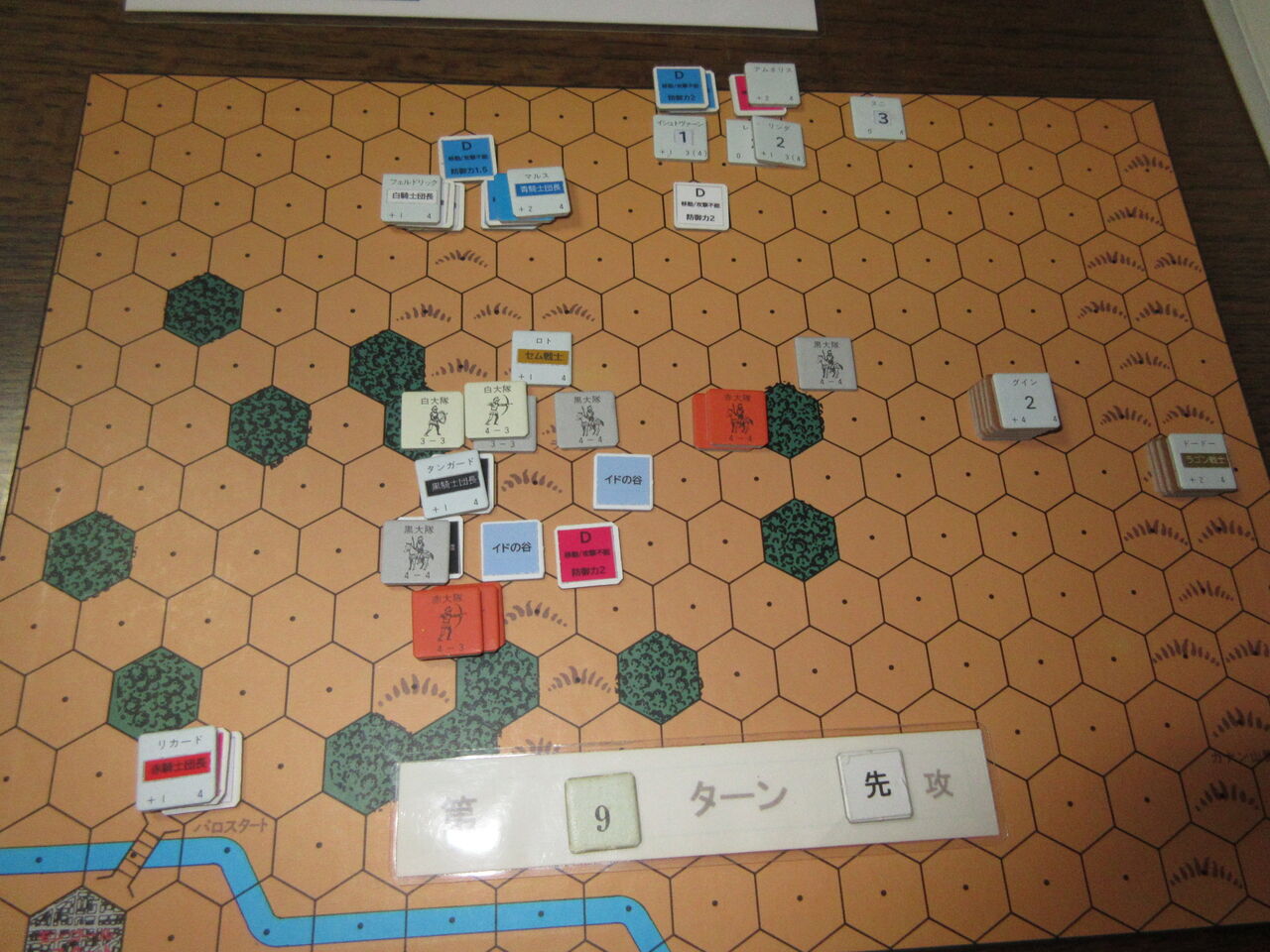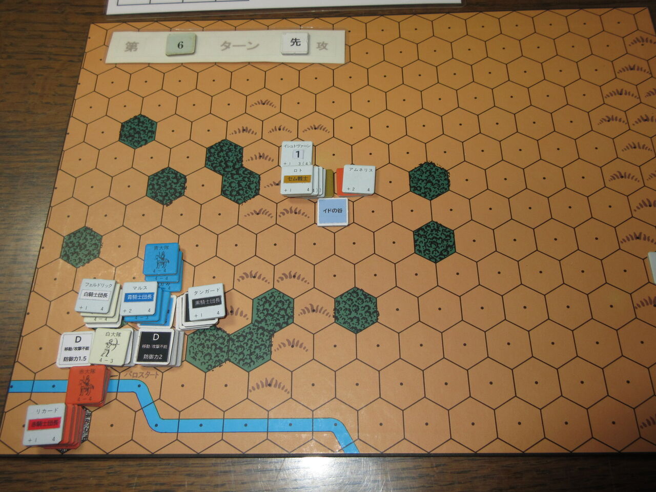・ノスフェラスの効果は、1へクスの移動ごとでなく、各移動時にする(移動終了時にdr判定)。ただし、序盤(第6ターンまで)の赤騎士隊については、元のルールを適用する。