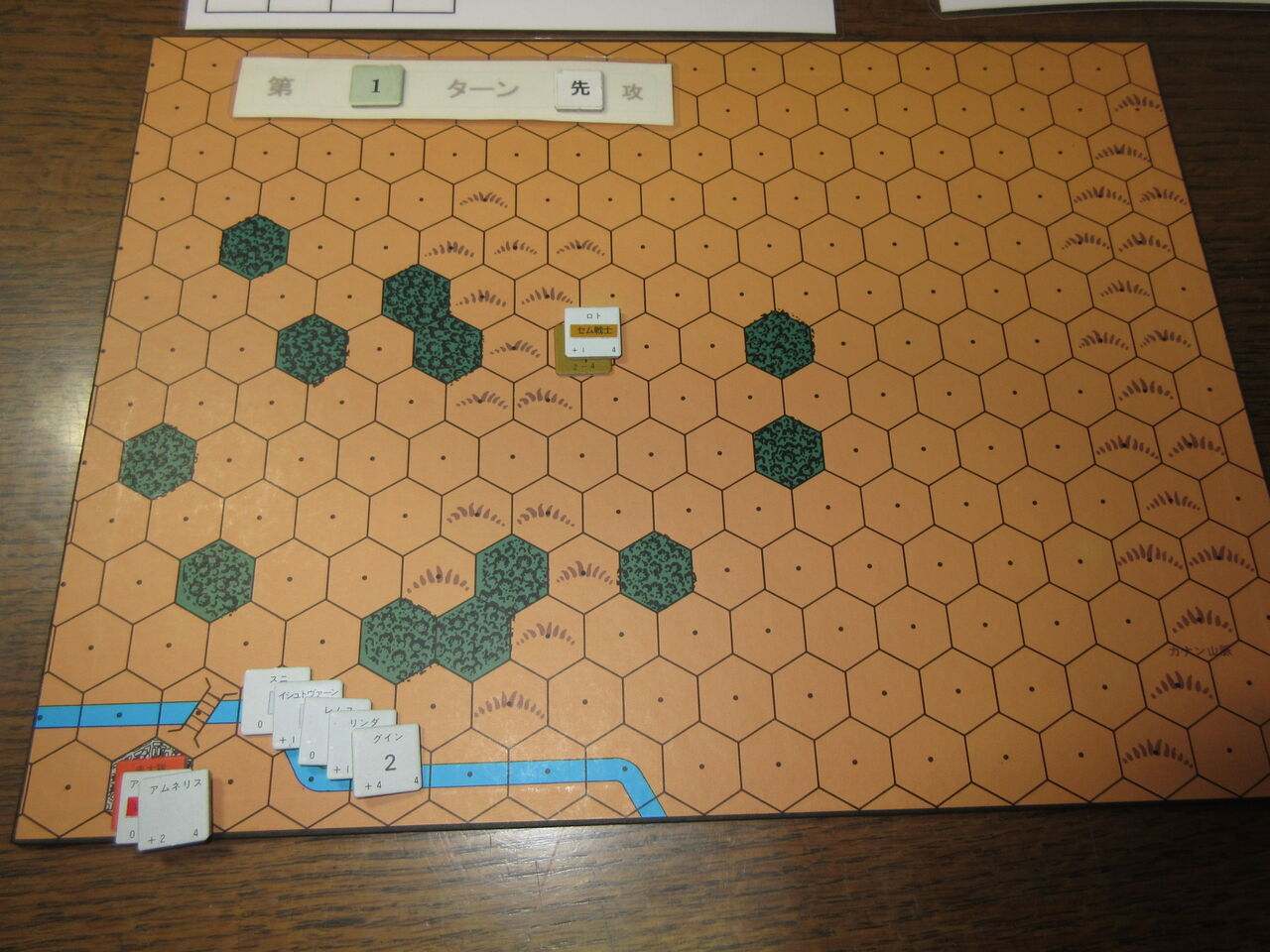 第3ターン、最短距離を駆けぬけんと、モンゴール軍は森林に入り込みますが、ここでグールの待ち伏せに遭い、ストップ。
