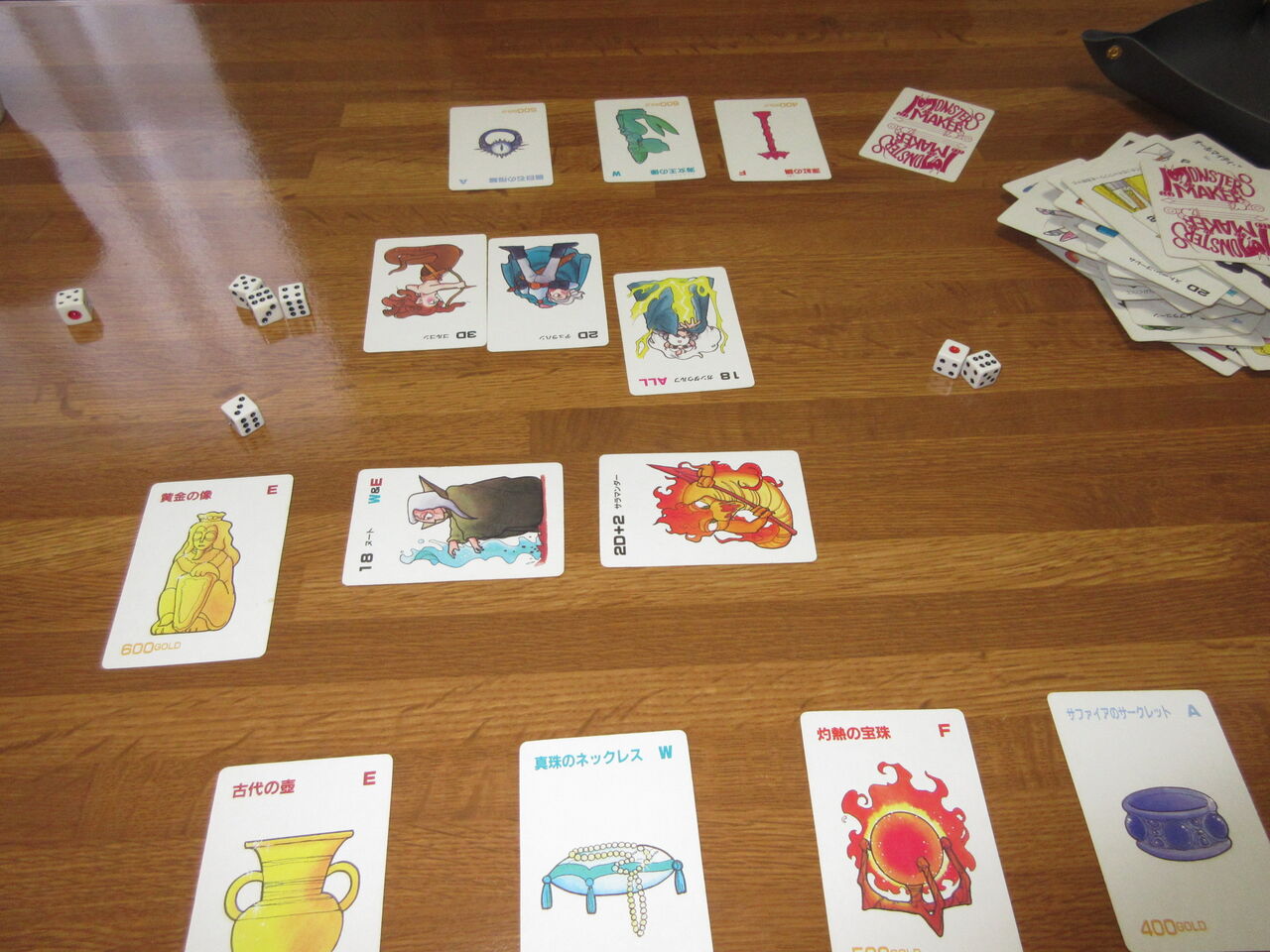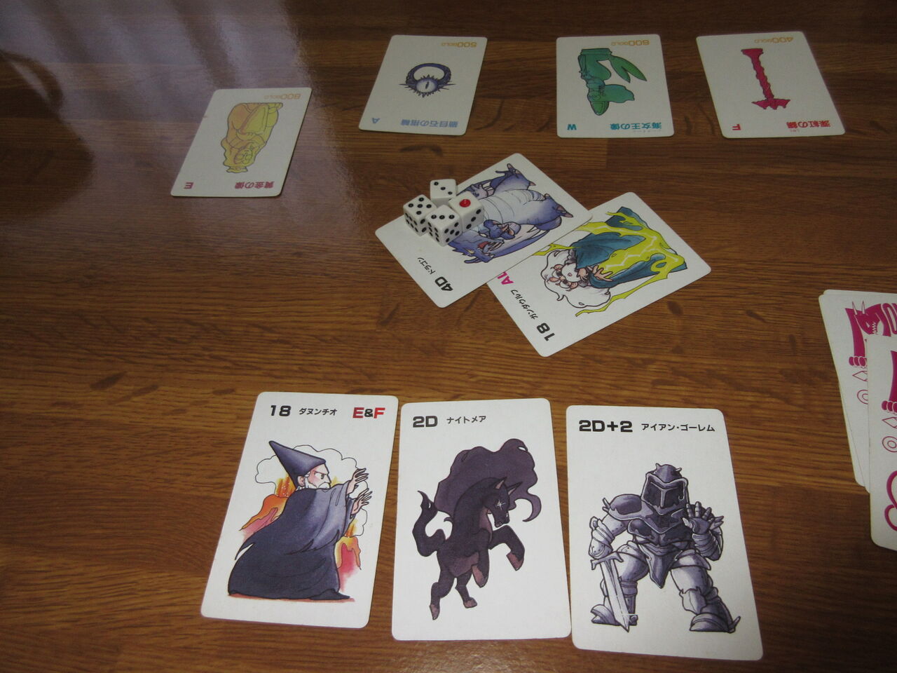 その後、BIBI陣営には魔物カードが多く来て、積極的に攻撃をかけますが、ああ、drが足りず。せっかくの2d攻撃でピンゾロを出したり、こちらもdr1個しか振れないのに、1を出したりと、見事なまでの低ロール。