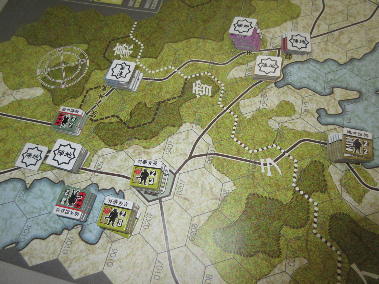 前回に、プレイして面白かった「賤ヶ岳戦役」(GJ)。攻城戦の結果次第のところはありますが、それまでいかに効率よく攻めるか(守るか)が問われます。インストを入れても2時間弱といったところが、繰り返しプレイできていい。