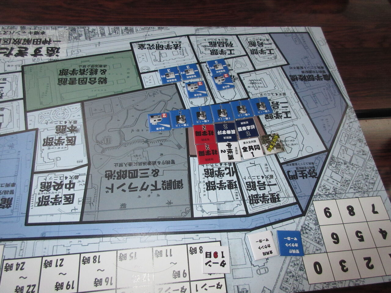 自分も、対戦予定のあった「遠すぎた東大」に、モンスターメーカー5、トリックテイキング系2点、「突撃?!レイテ湾」系の2点、想像型協力ゲームなど、気がついたら、なんと7点で13戦(!)もプレイしていました。ちはら会もそうですが、みなさん、お歳が進み、簡単でスピーディなアイテムがぐるぐる回るよう(あんまり、難しいゲームに耐えられない?!笑い)。