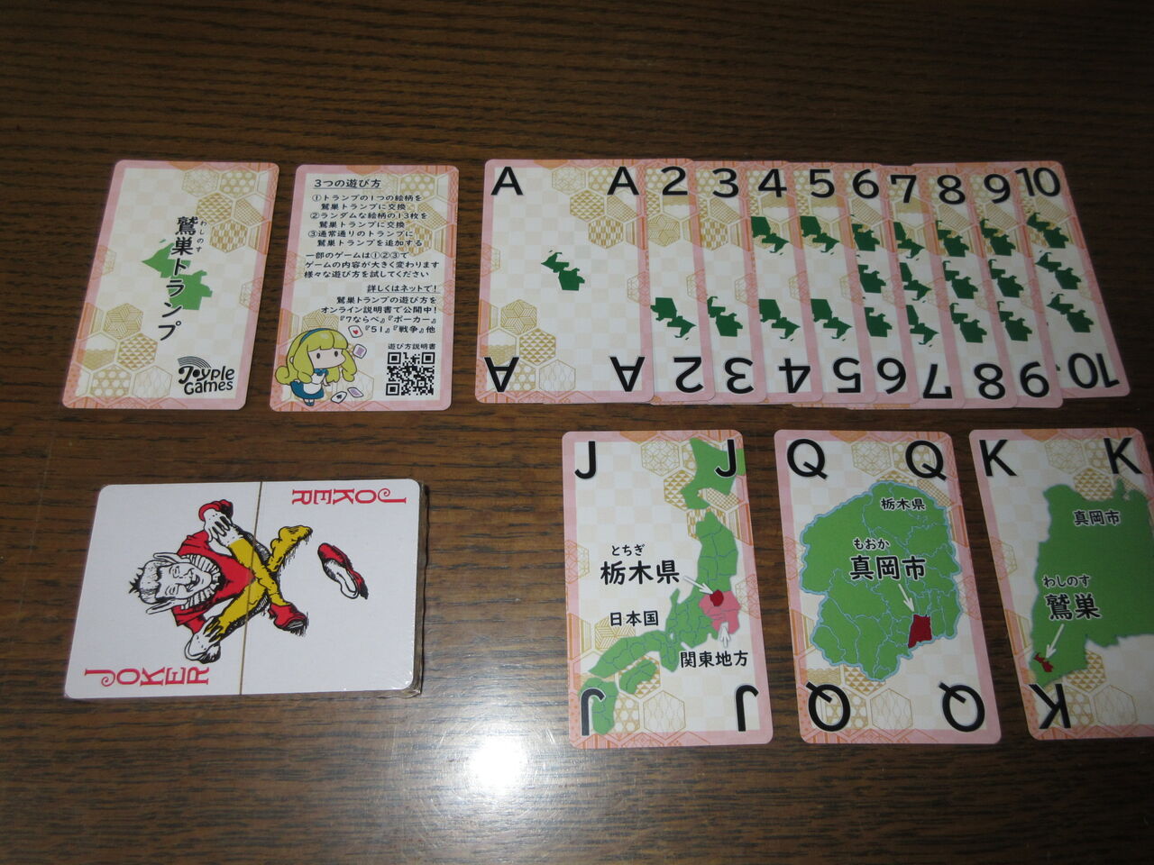 「スコープ」を逃した反動で、ついつい、買いすぎてしまいましたが、最後に会場を一回りして帰える間際に、「千葉県のゲームがあります!」引き寄せられたところ、「18××」(AH)のシステムを使って、千葉県の鉄道を開発するオリジナル。それなりのコンポなのにわずか500円でしたが、「採算はどうでもいいんです!」と熱い地元愛に絆されて購入に。すると、栃木県にゆかりのある方が制作した「鷲巣トランプ」が、もれなく(?)進呈でした。栃木南部の真岡市の一地方をゲーム化って、マイナーっぷりがすごい!