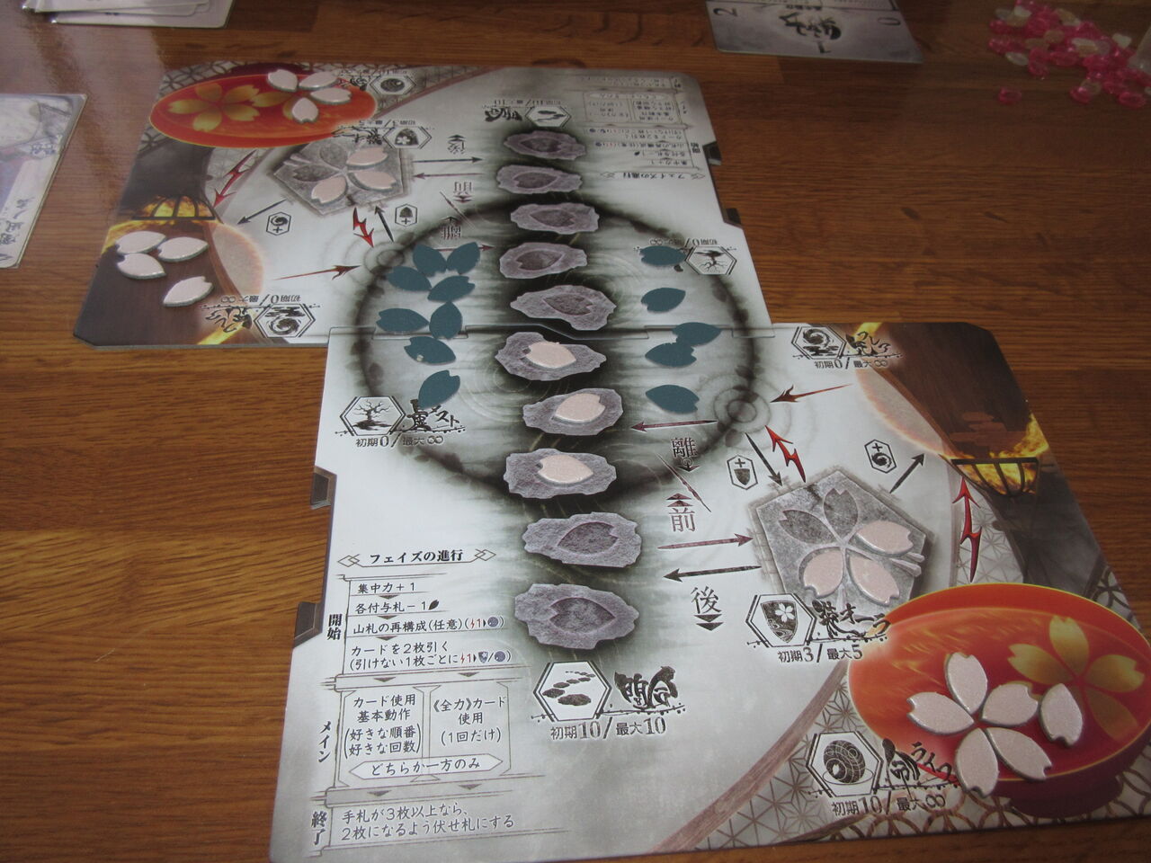 今年はなかなか時間がとれず、体調もいまいちで休日は休養が多かったのですが、暖かくなって少し落ち着いたので、BIBIさんとオフ会を開きました。いつもの手軽なカード系の3アイテムを対戦。ちはら会十八番の「Ships&Tactics」(グループ乾坤一擲)と購入したばかりの「スコープ:黒い森の戦車戦(Bonsai Games)」に加え、ずっと準備中だった「新幕 桜降る代に決闘を(Baka Fire Party)」をプレイできました。今回は練習ゲームだったのですが、受け持ったホノカ(mitsu)が全然、勝てないので、ついつい7戦もしてしまい。気が付けば、延べ10戦という充実したカードゲーム三昧でした。