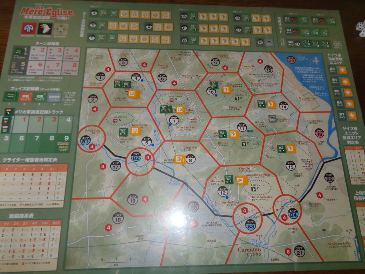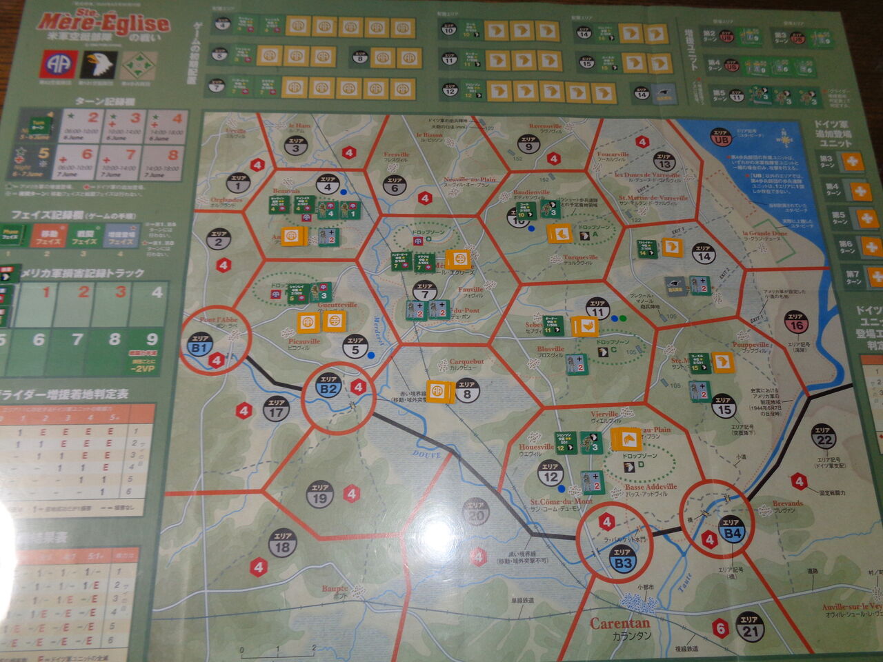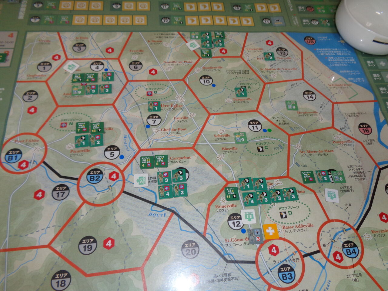 全8ターンですが、第1と第5ターンは夜間のため、戦闘ができず。大勝利のためには空挺エリア全てとそれ以外を8エリア占領せねばならず、こちらもかなり困難です。