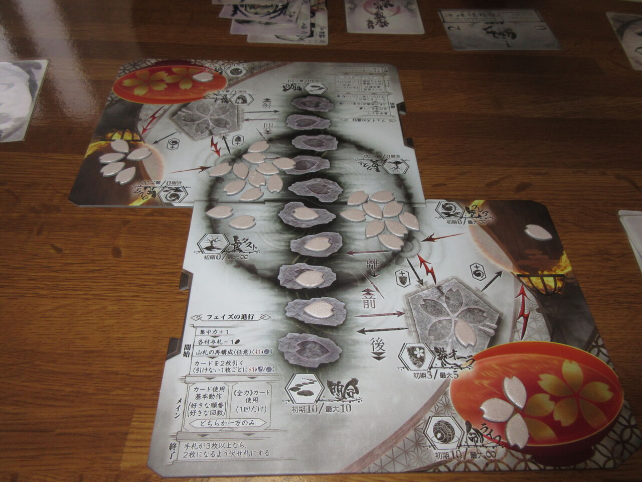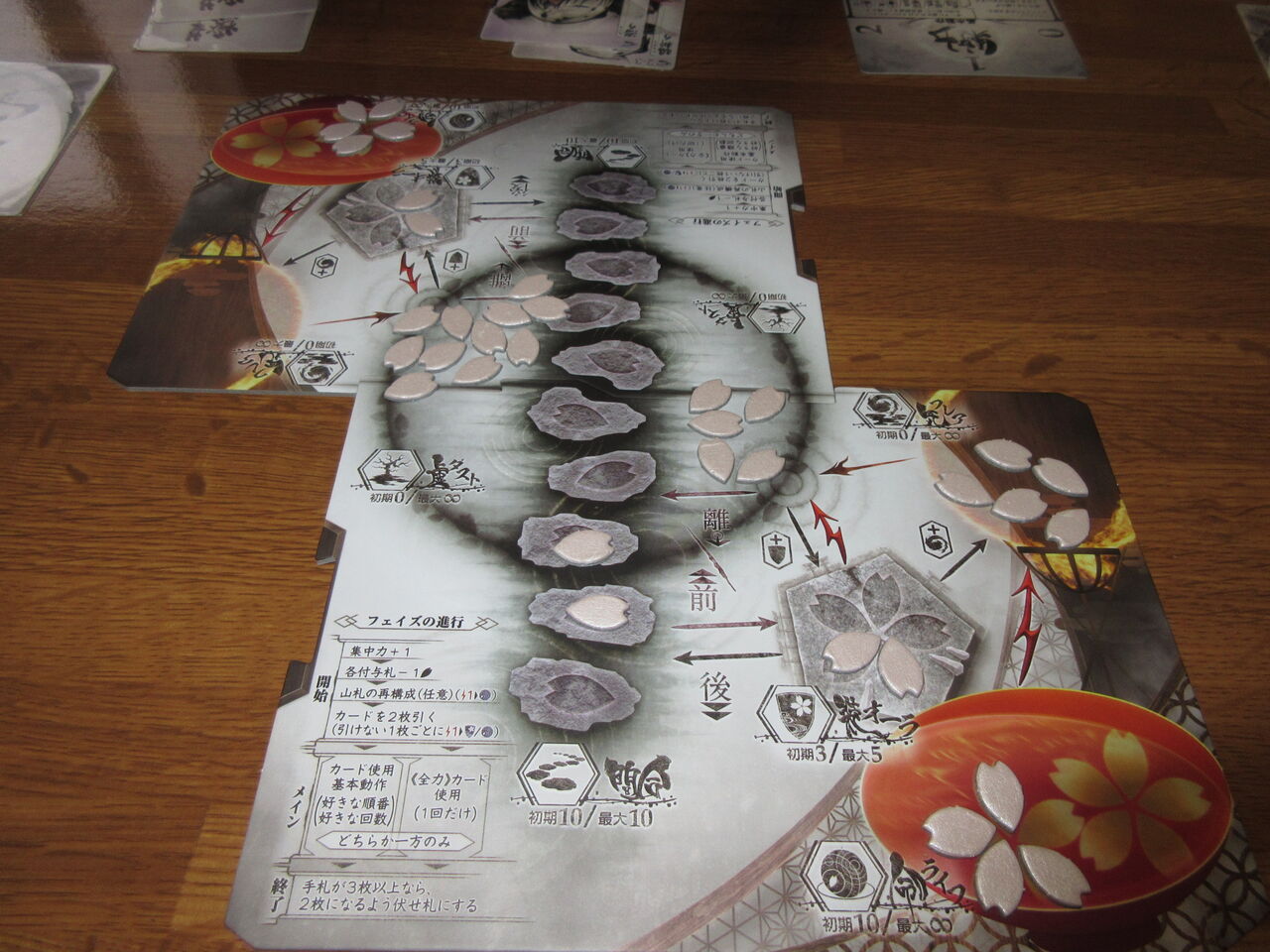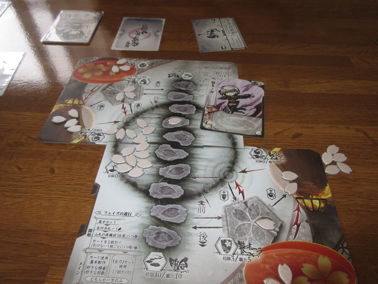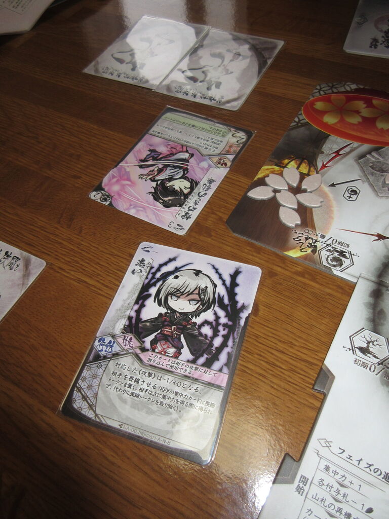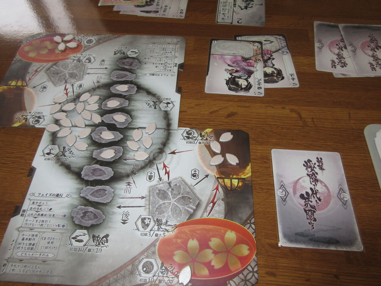 最後に「桜降る代に決闘を」(Baka Fire Party)を対戦しました。非常に良くできたゲームで、カード巡りが大きいものの、非常に選択肢が多く。前回のプレイからまだ二月たっていないのに、すっかりルールを忘れていて。「認めたくないものだな。老いぼれ故の過ちというものを・・・」(泣)