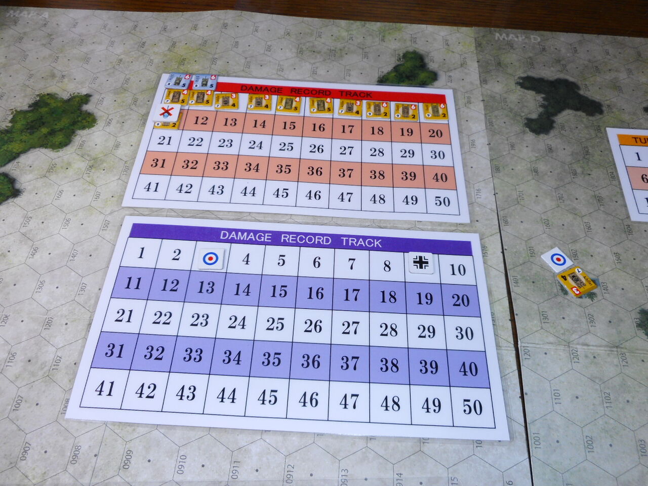 これ以外に、敵の車輌を撃破すると各1点になり、残っている車輌と占領建物の合計が敵の2倍になると勝利します。参加兵力は、イギリス軍が12輛で、ドイツ軍が8輛です。