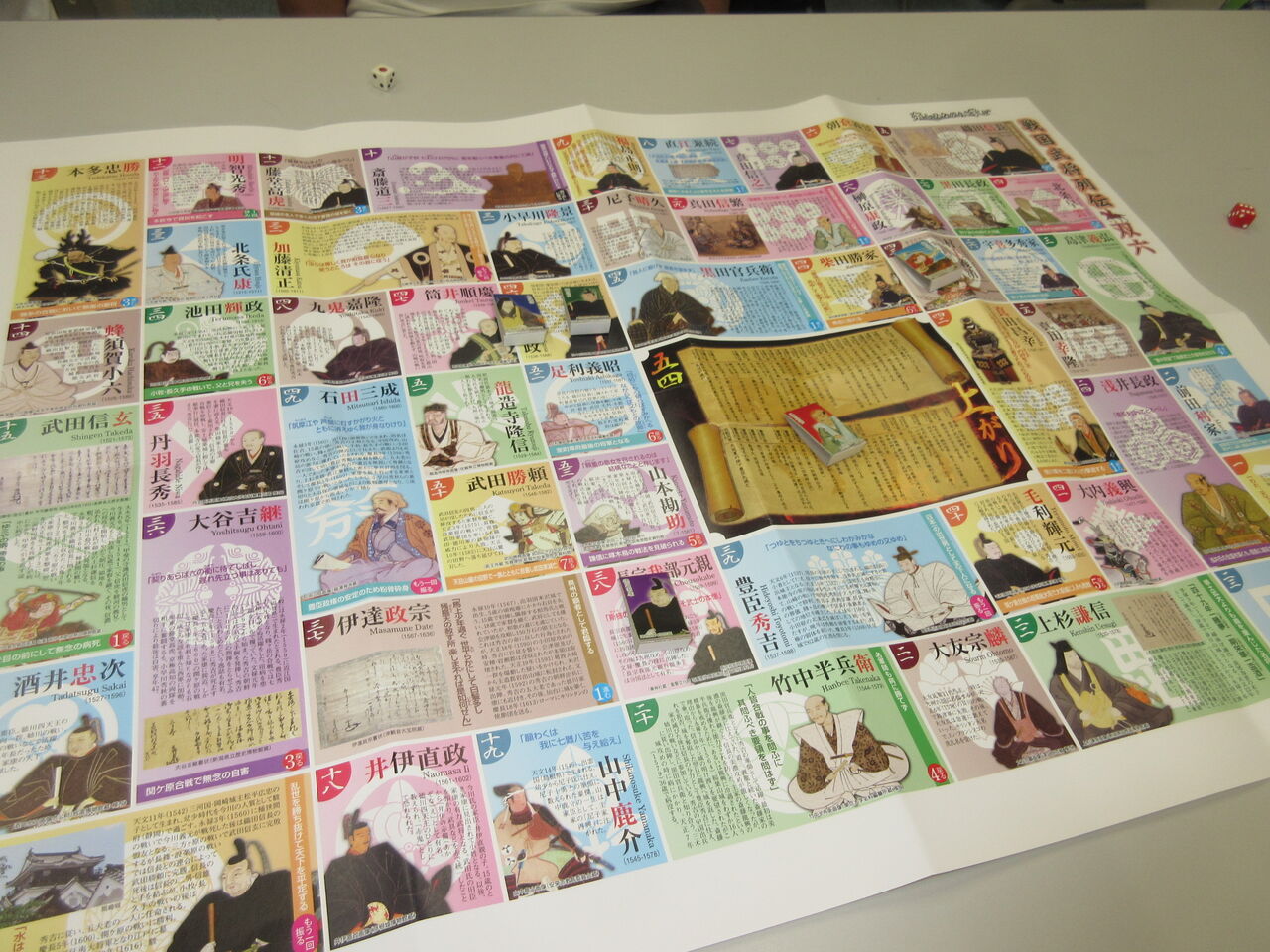 昼過ぎにみなさんが集まったところで、手軽にできる「戦国武将列伝双六」(歴史倶楽部)をプレイすることに。