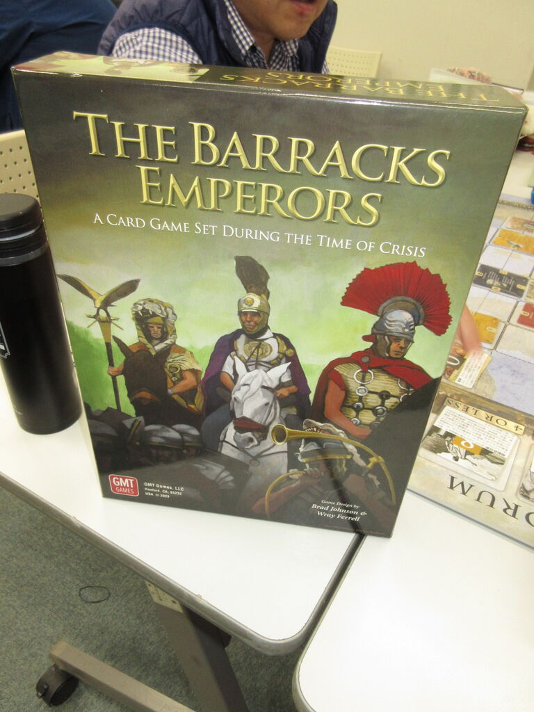 こちらは、ゆいしかさんが持ち込んだ「THE BARRACKS EMPIRES」。3世紀の危機と呼ばれる軍人皇帝時代を描いたトリックテイキングだそうで。第1戦は、所有者のゆいしかさんが、第2戦はBIBIさんが勝利した模様です。